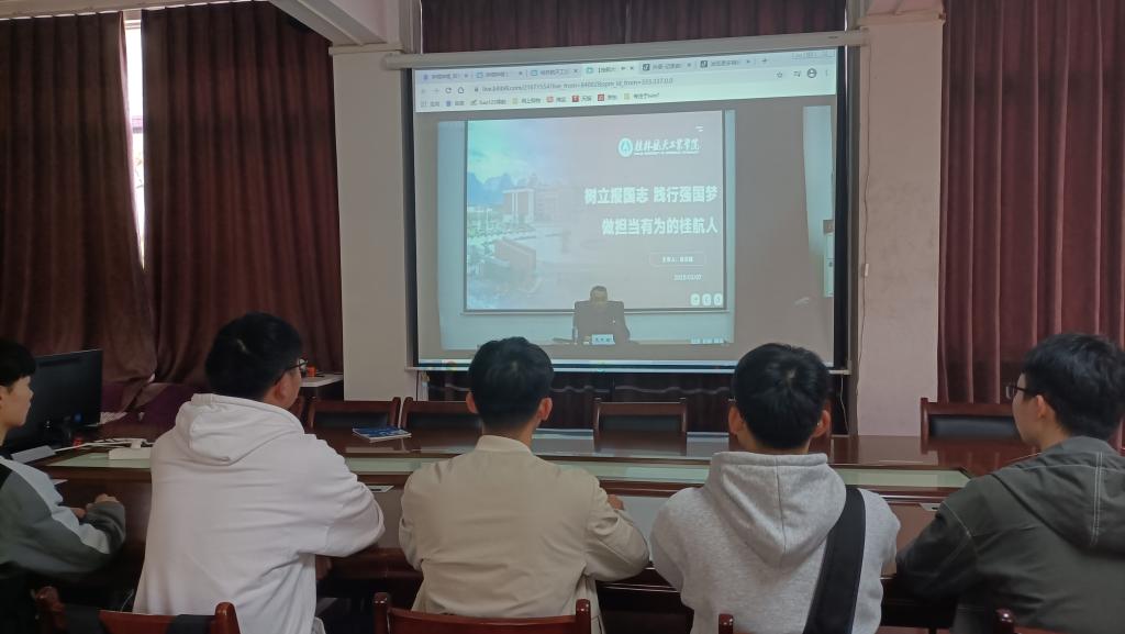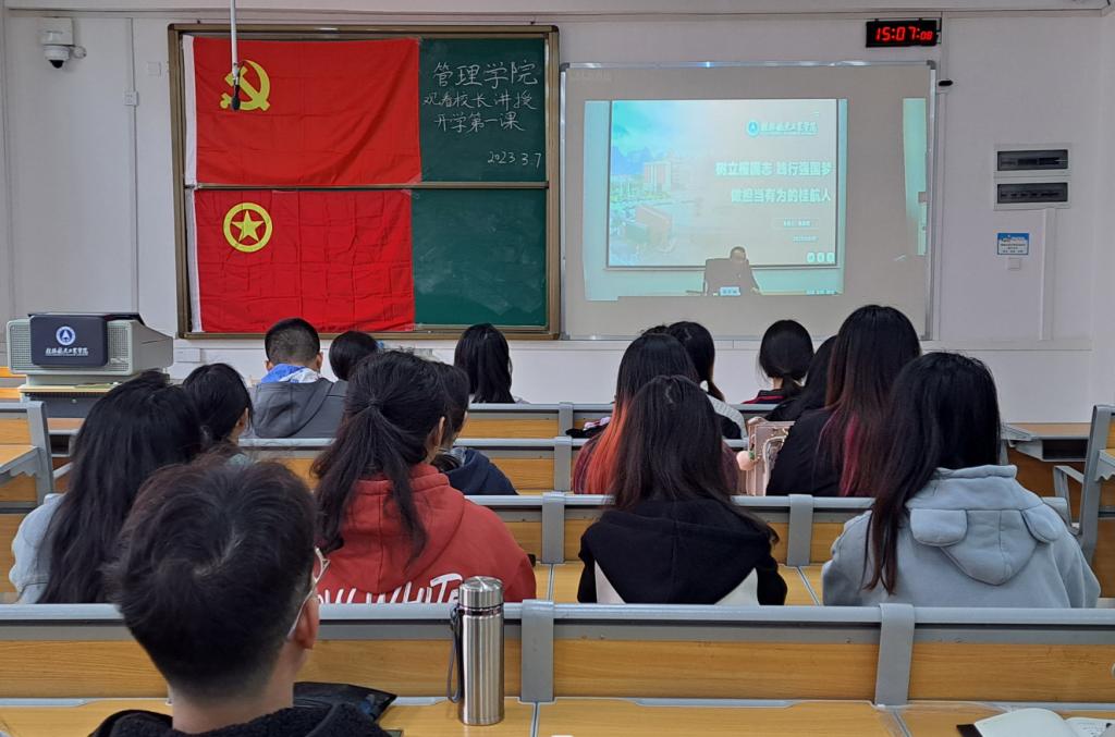 为深入学习贯彻党的二十大精神,加强爱国主义教育,聚焦两会砥砺奋进新征程。3月7日下午,校长、党委副书记吴尽昭以“树立报国志,践行强国梦,做担当有为的桂航人”为题,通过“现场+直播”的形式讲授了生动有趣、内涵深刻的开学第一课。300余名学生在致远楼108现场聆听报告,各学院设分会场在线收看。
