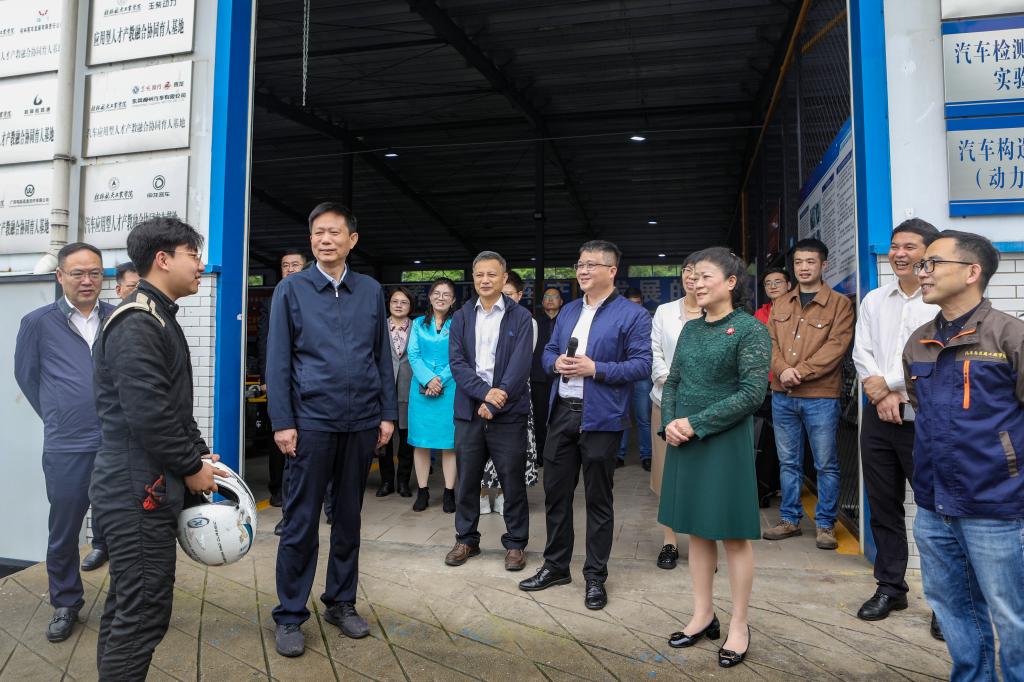 调研组一行还观看了由pp电子师生独立设计制作的“航V”大学生方程式赛车表演,与同学们进行了亲切交谈,深入了解pp电子学生学习实践情况,鼓励他们再接再厉刷新佳绩。