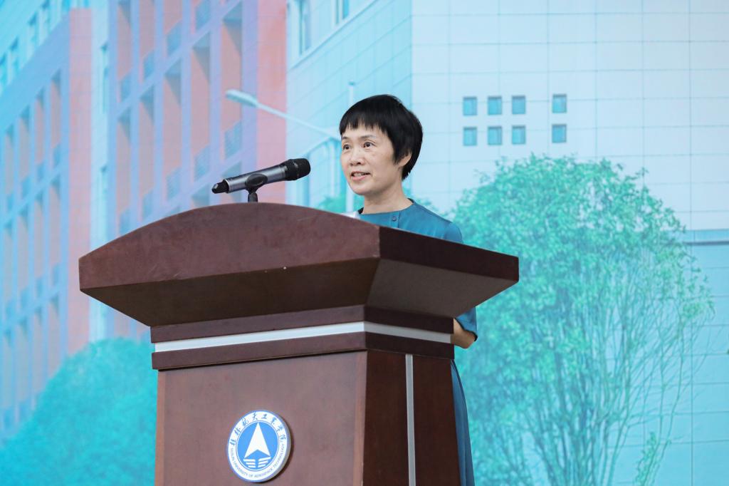 吴江萍作军训总结讲话,她代表学校向付出辛勤汗水的承训单位全体教官和学校相关部门、人员表达了衷心的感谢,向圆满完成军训任务的全体同学们和获得表彰的先进个人表示热烈的祝贺。同时,她寄语2023级新生,要秉承军训过程中练就的优良作风,珍视军训期间建立的深厚友谊,继承军训传统,成就辉煌明天。