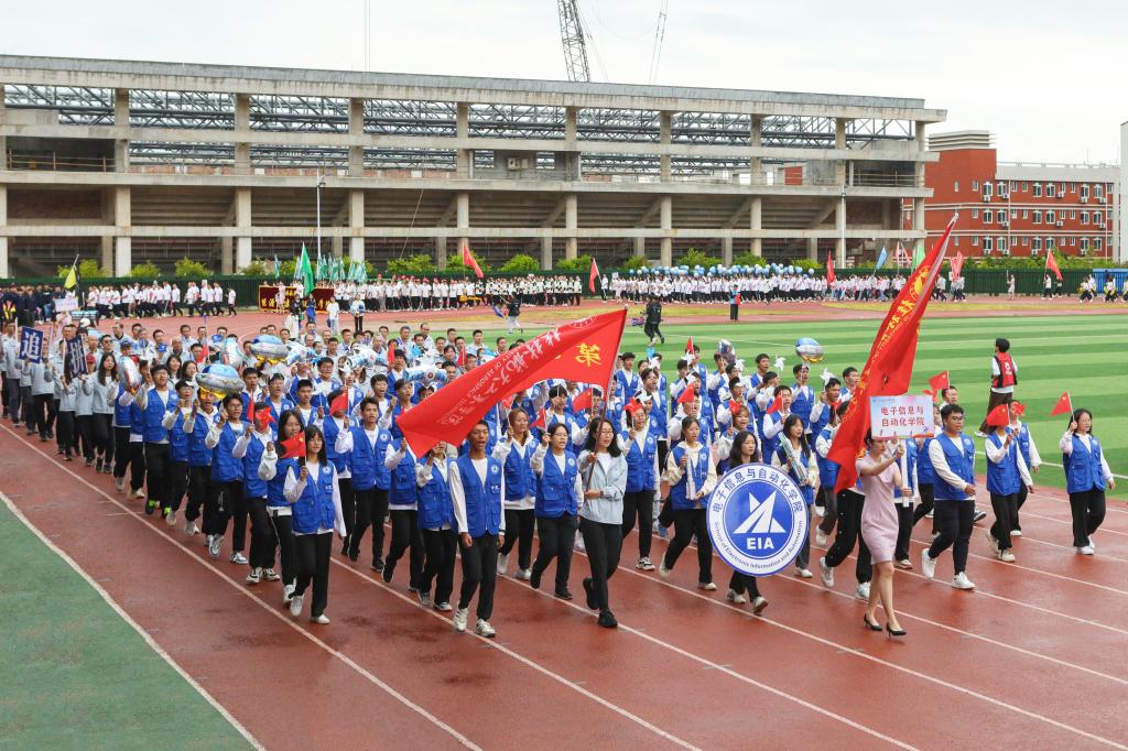 10月27日,pp电子第四十二届田径运动会开幕式在南校区风雨足球场隆重举行。学校领导李幼平、吴尽昭、罗延忠、李智、葛莉出席开幕式,学工部(处)、教务处、校工会、校团委、体育部主要负责人,一至十一院、国际教育学院以及研究生院主要负责人,师生代表参加开幕式。开幕式由学工部(处)王凯主持。