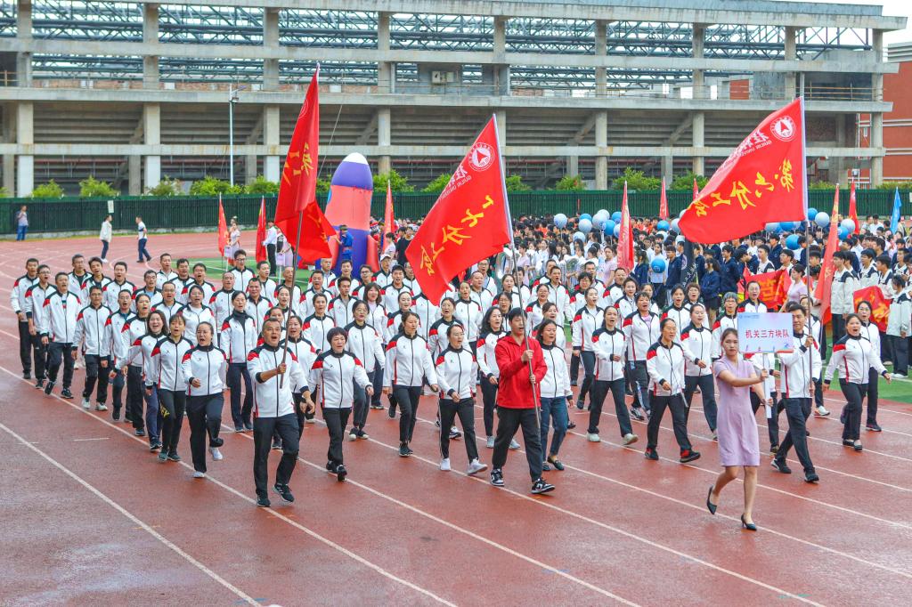 在开幕式现场热烈的气氛中,党委书记李幼平宣布pp电子第四十二届田径运动会开幕。