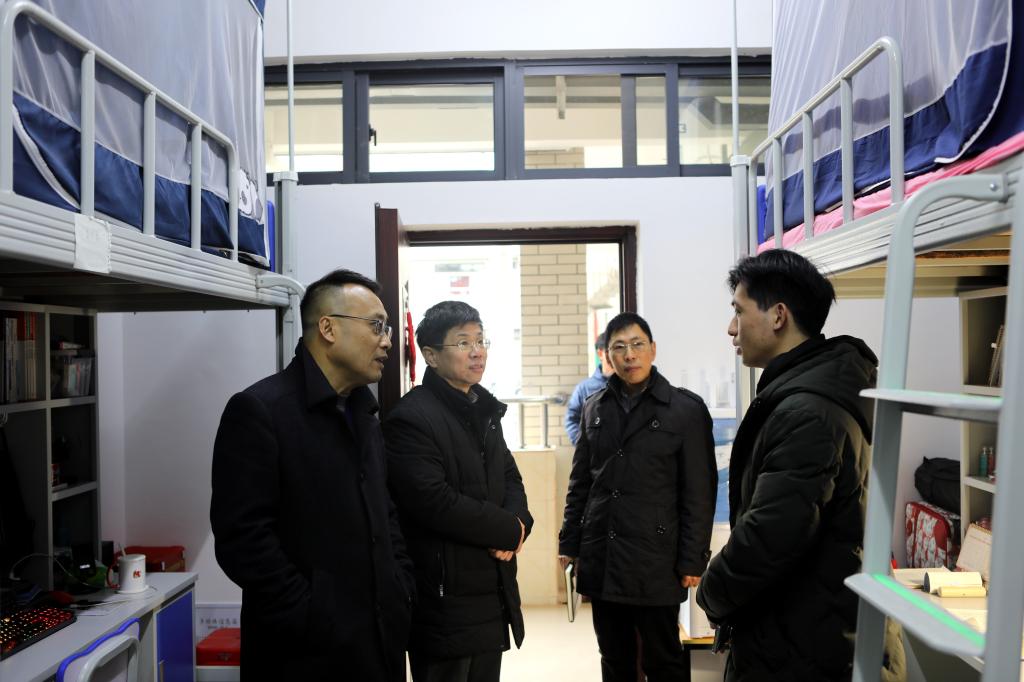 3月1日,为确保2024年春季学期开学平稳有序,校党委书记韩峻峰、校党委副书记、校长吴尽昭、副校长李智、葛莉带领相关部门负责人深入教学单位、学生宿舍、食堂、在建项目工地等重点区域,实地检查新学期各项工作开展情况。