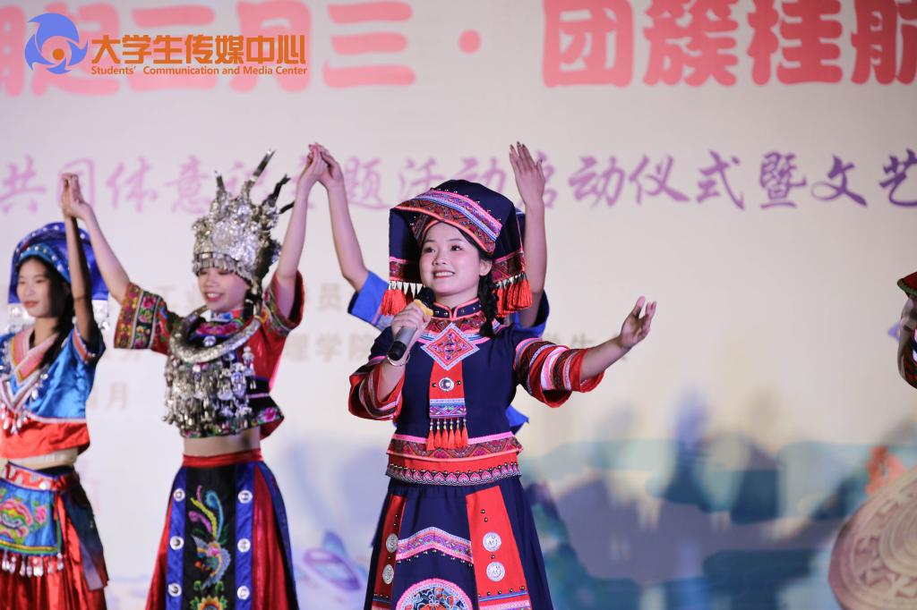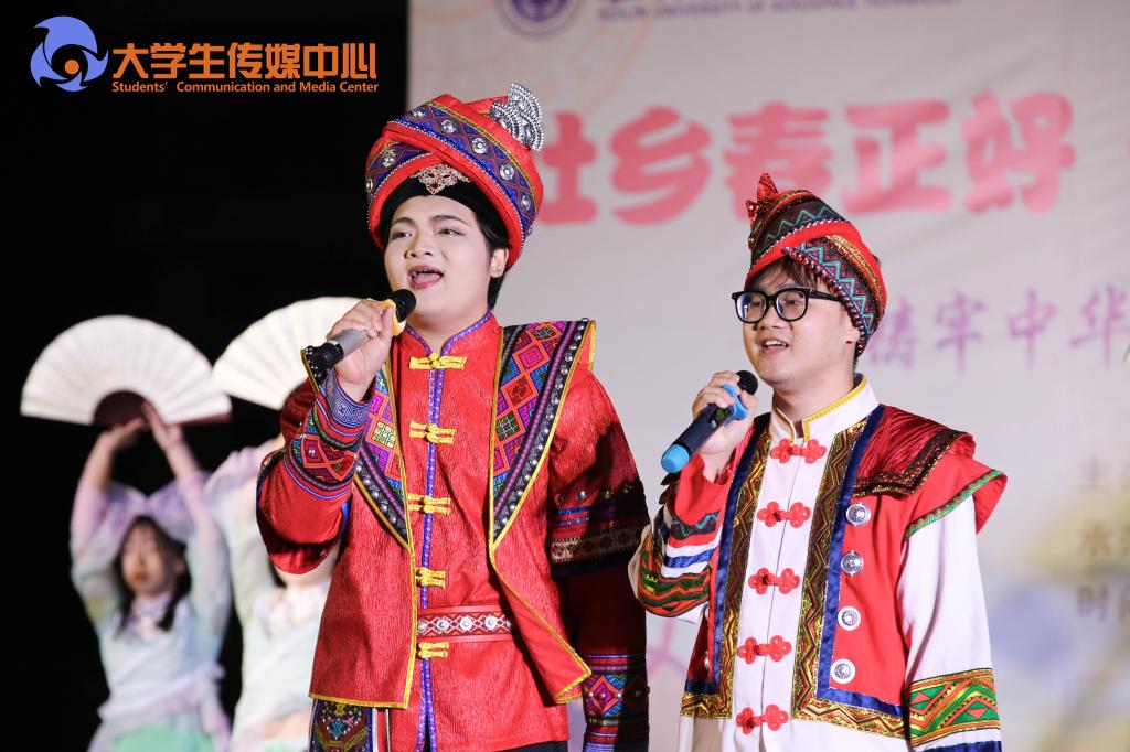 晚会上,壮族特色舞蹈《歌飘山水间》点燃全场气氛,合唱《壮族敬酒歌》、歌伴舞《踏歌三月三》,用歌声与舞蹈传递壮族传统文化的魅力。此外,由师生带来的歌伴舞《边疆的泉水清又纯》、合唱《这世界那么多人》、对唱《无名的人》,以及歌曲串烧,以歌会友,以歌传情。同时,晚会还融入了戏曲、武术、器乐和朗诵等元素,合奏出各民族一家亲的心声。