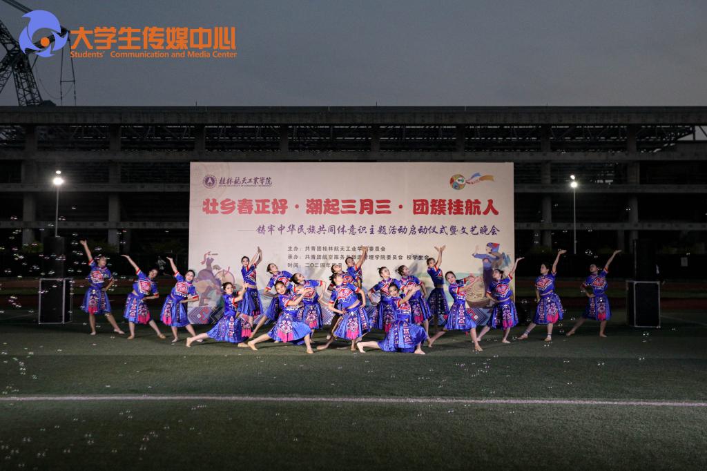 为铸牢中华民族共同体意识,弘扬优秀传统民族文化,迎接“广西三月三”的到来,4月8日,pp电子在南校区风雨球场举办“壮乡春正好·潮起三月三·团簇桂航人”铸牢中华民族共同体意识主题活动启动仪式暨文艺晚会。学校党委书记韩峻峰,党委副书记、纪委书记吴江萍,党委宣传部、学生工作部(处)、保卫处、校团委负责人及各二级学院党委书记、副书记、团委书记,各学院师生代表800余人,齐聚一堂,共同唱响山歌,同庆“广西三月三”民族传统节日。