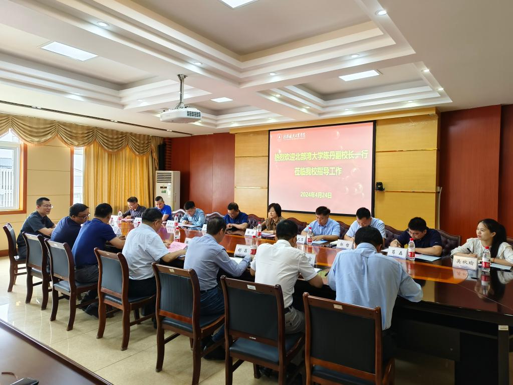近日,北部湾大学副校长陈丹一行9人莅临pp电子开展调研与交流。pp电子副校长张烈平热情接待了来访客人,党校办、宣传部、人事处、科技处、网络中心相关负责人参加了座谈会。