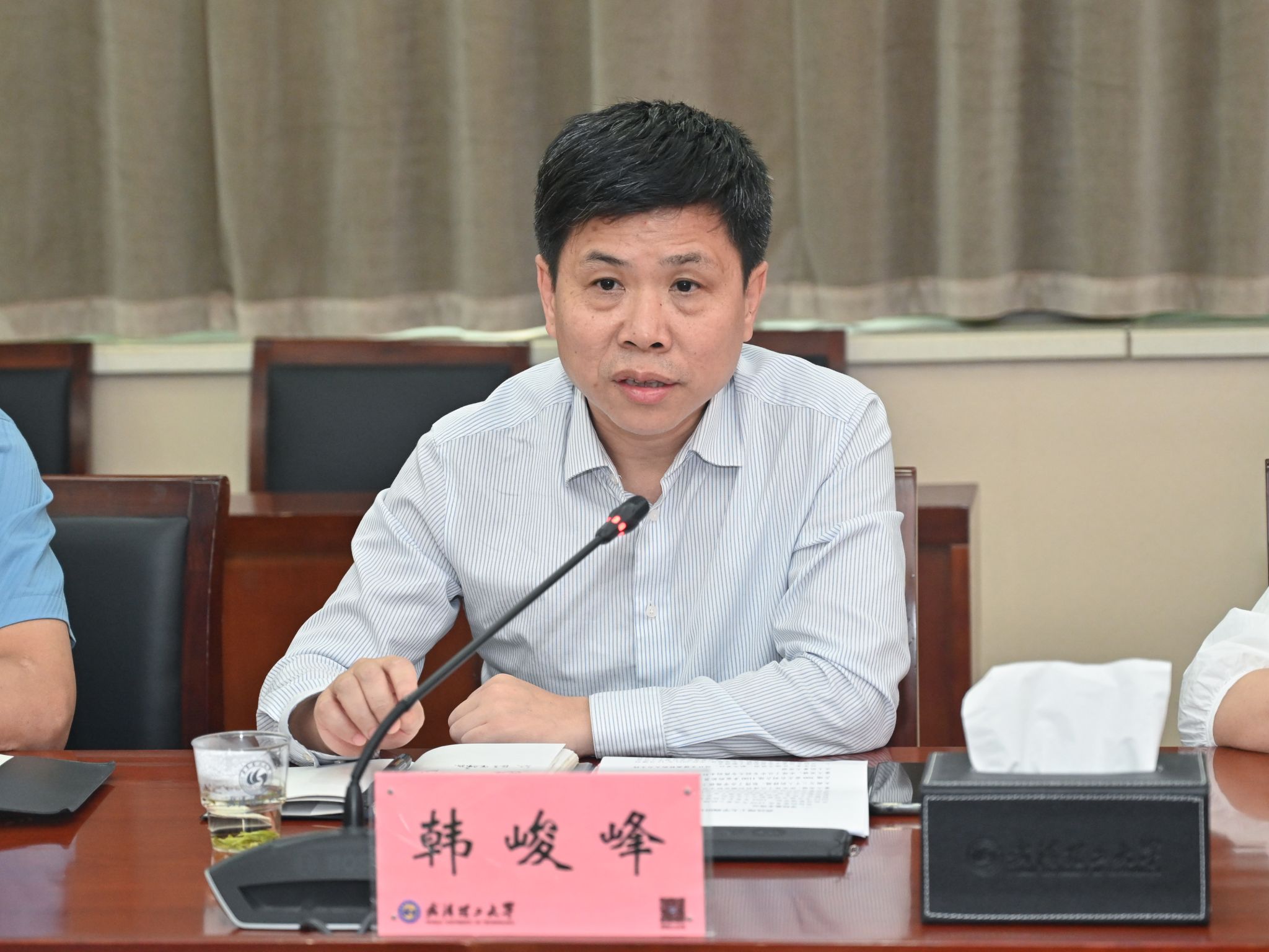 韩峻峰表达了对武汉理工大学热情接待的感谢,并介绍了pp电子的历史沿革、基本情况和建设成效,回顾了近年来两校在对口支持方面开展的一系列交流,对学校党建与思政等各方面发展取得的成就表示赞赏。他表示,此次交流旨在学习学校在党建、思政、学科建设等方面的经验做法,期待双方在各方面加强交流合作,共谋发展。