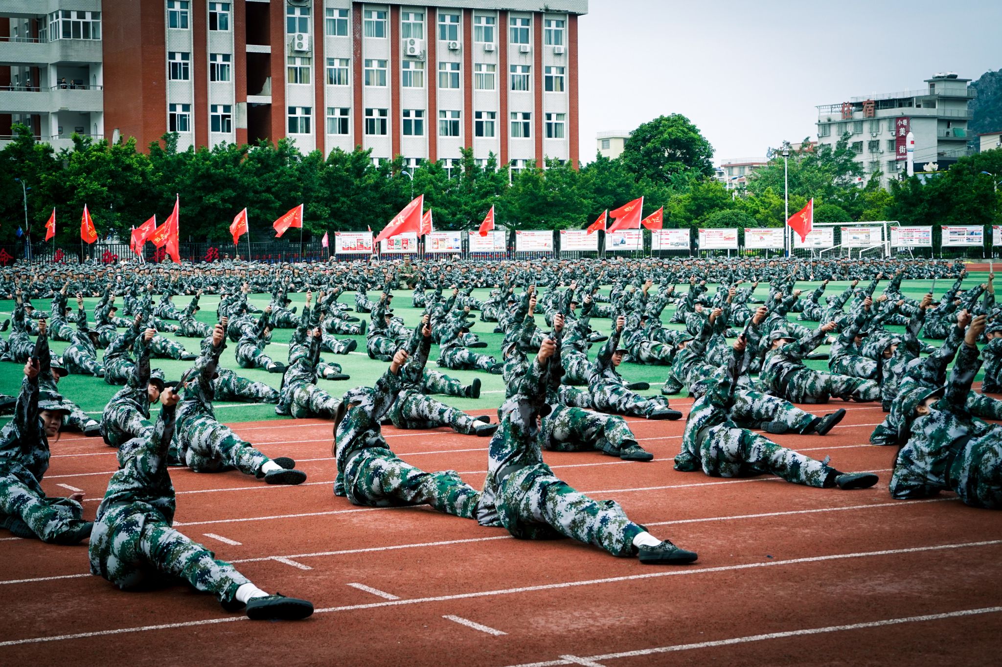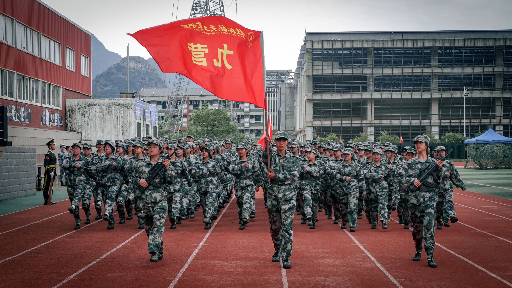 在雄壮的国歌声中,2024级学生军训会操典礼正式拉开帷幕。伴随着分列式进行曲的铿锵节奏,分列式展演正式开始。十一个分列式方阵喊着嘹亮的口号依次通过主席台,他们步伐坚定,身姿挺拔,目光坚毅,精神抖擞,展现着青春活力与拼搏精神。