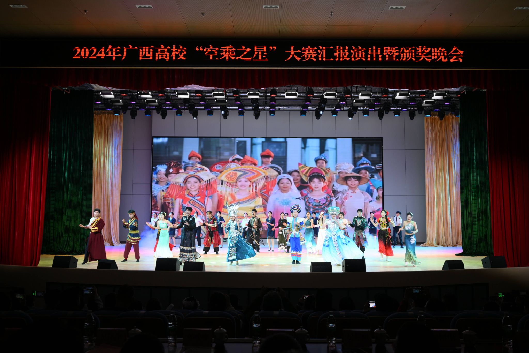 12月18日晚,由学校和广西航空航天学会主办,航空服务与旅游管理学院承办,广西(桂林)低空旅游研究院等单位协办的广西高校“空乘之星”大赛汇报演出暨颁奖晚会在问天楼报告厅举行。学校党委书记韩峻峰,校长吴尽昭,党委副书记、纪委书记吴江萍,党委副书记孙山林,副校长葛莉,副校长张烈平,副校长张立国出席了本次活动。桂林市文化广电和旅游局、桂林航空有限公司、桂林市高新区科创局、桂林市融媒体中心、桂林旅游学会、桂林市教育电视台、桂林市阳朔县委宣传部以及长期与pp电子保持合作交流的桂林电子科技大学、桂林旅游学院、柳州职业技术大学、广西蓝天航空职业学院、桂林技师学院、洲际航空有限责任公司、广西夏日航艺培训学校、南宁彤景模特经纪有限公司、广西艺鸣艺术培训学校等学校及企业代表参加晚会。