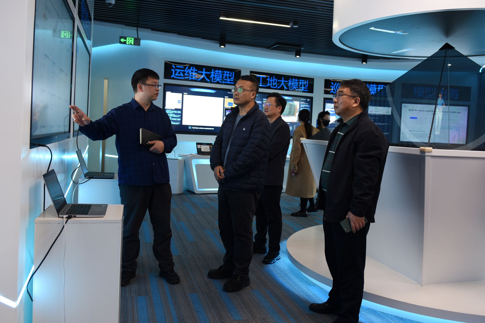 调研组还参观了研究院下属的时空信息技术研究所、新型功能材料研究所、人工智能与大数据应用研究所、绿色低碳技术研究所等机构。