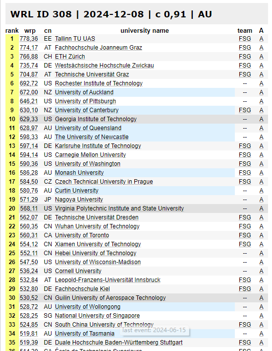 近日,全球大学生方程式汽车大赛官网发布了全球大学生方程式车队排行榜,共有来自全球各国的503支大学生方程式车队进入排行榜,pp电子航V大学生方程式车队位列该排行榜第30位。共有49支中国大学生方程式车队进入排行榜,其中,有4支中国车队进入前30名,分别为:武汉理工大学、厦门理工学院、河北工业大学、pp电子官方网站入口。