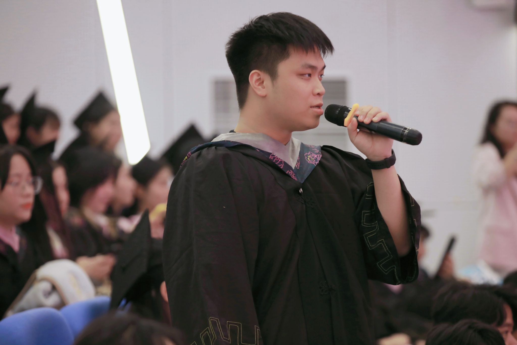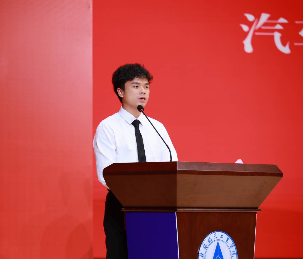 汽车工程学院2025届毕业生李悦鹏代表全体毕业生发言,回顾大学生活的成长历程,表达对母校的感恩之情和对未来的坚定信心。