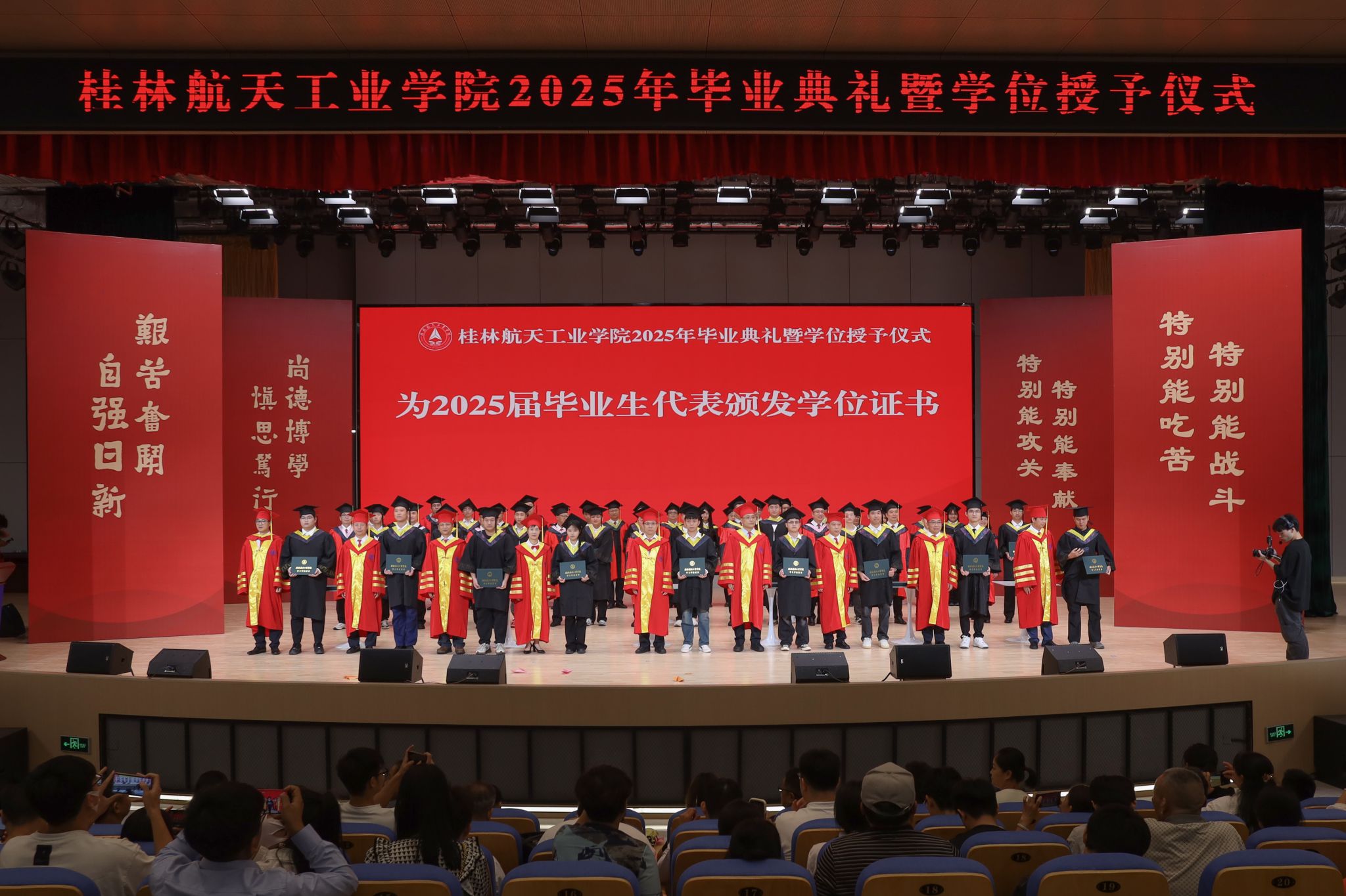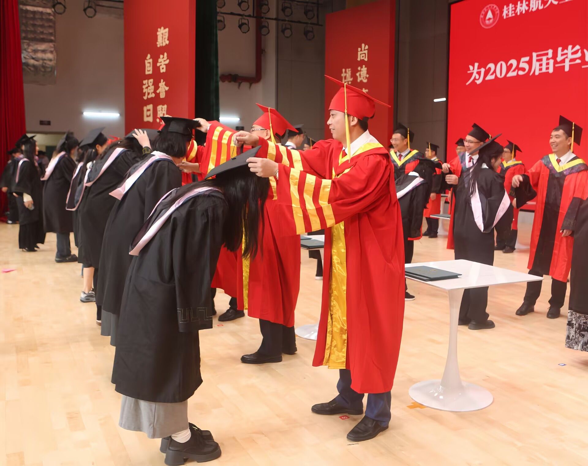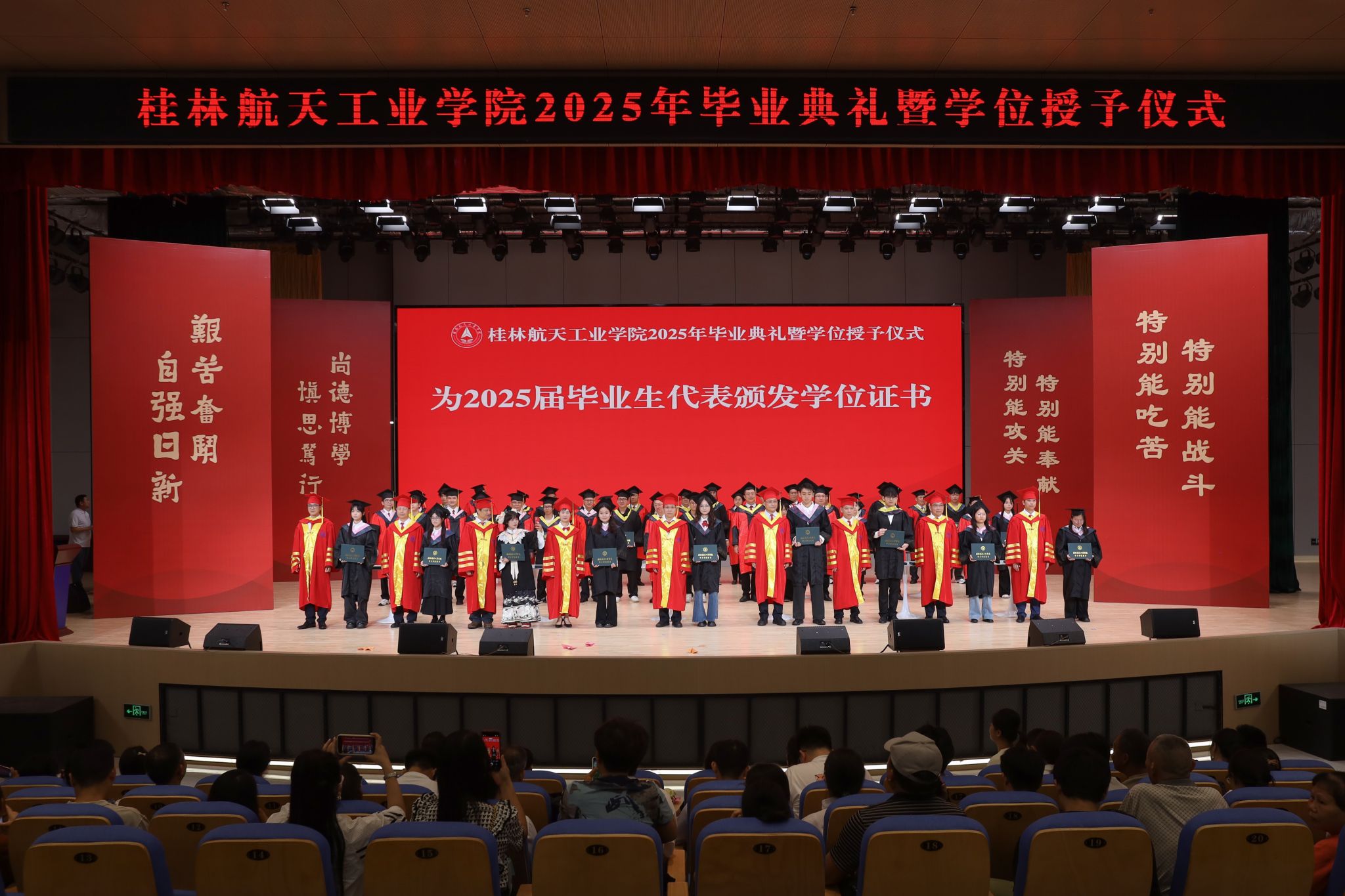 典礼上,精彩的情景剧《在盛夏告别》和朗诵《航天精神·桂航星辰》,展现了桂航学子的青春风采和航天精神。在感恩环节中,毕业生代表向专任教师、辅导员、教学秘书、实验室管理员、宿舍管理员、安全保卫员等校园各岗位工作人员献花,感谢他们多年来的默默坚守与无私奉献。四位教师带来歌曲《故事的最终》,以歌声表达不舍与祝福。