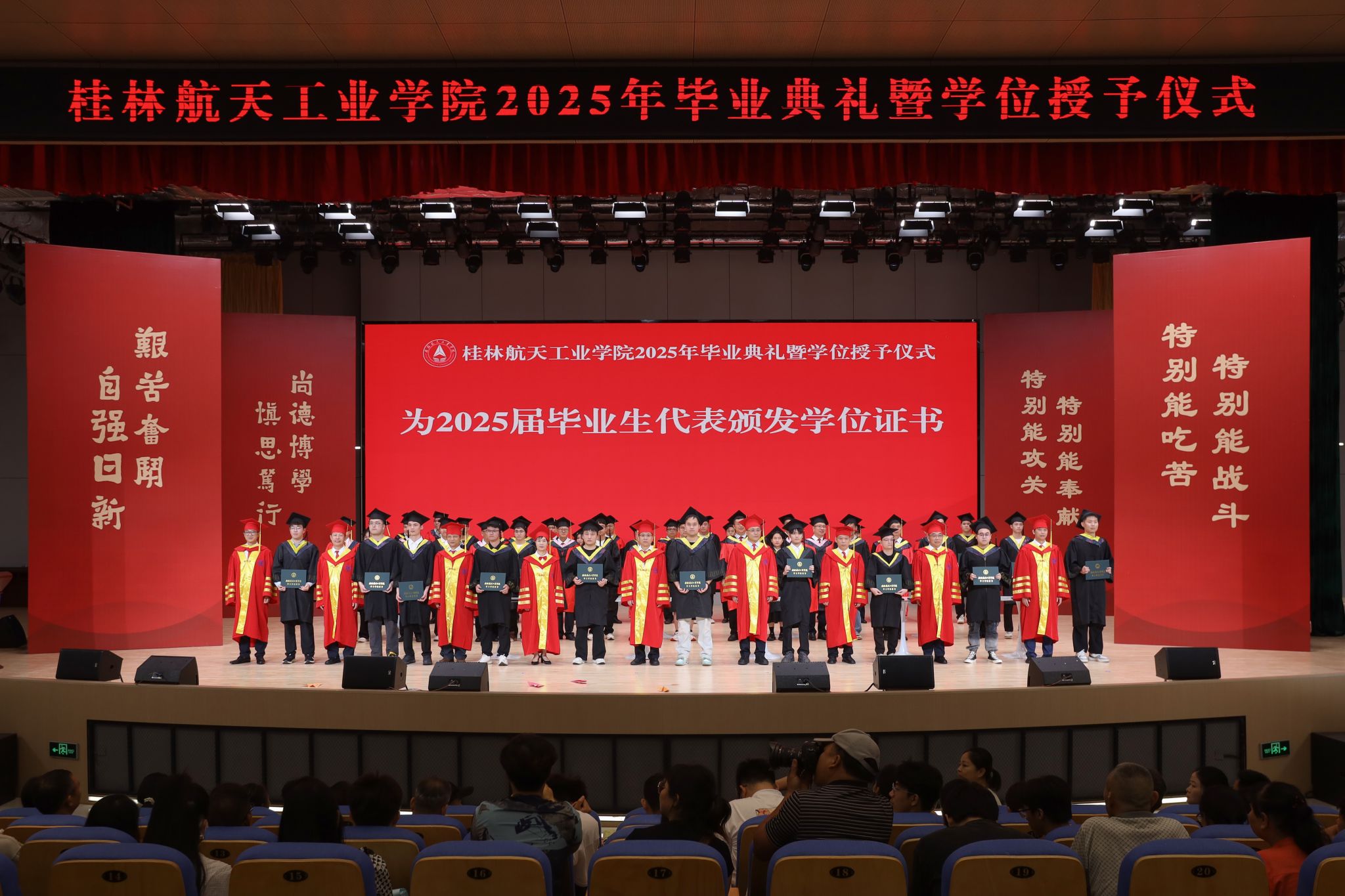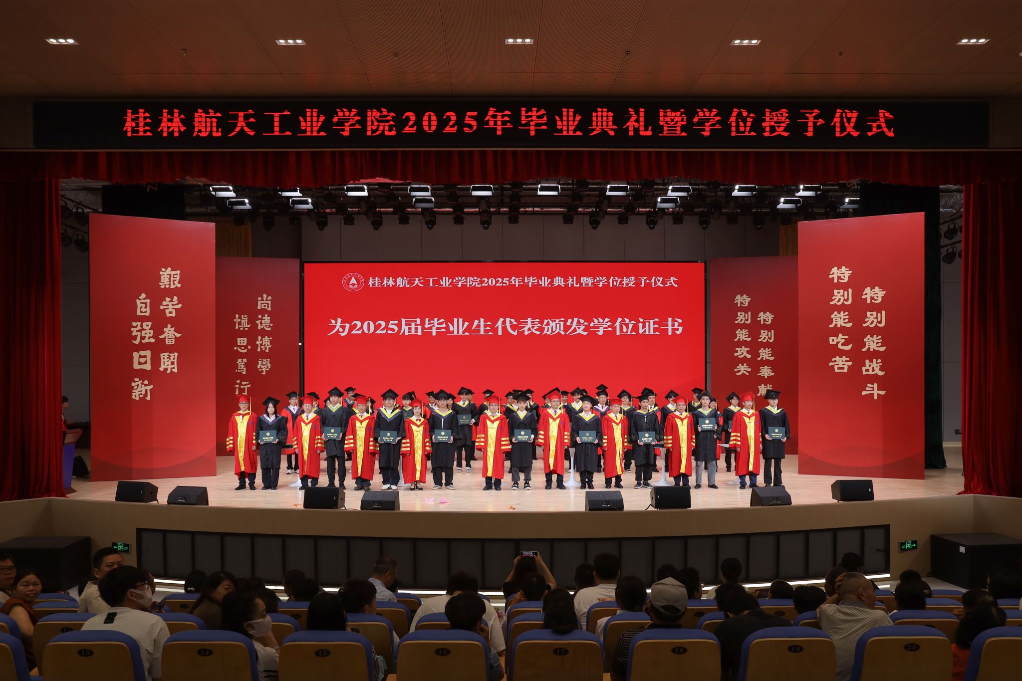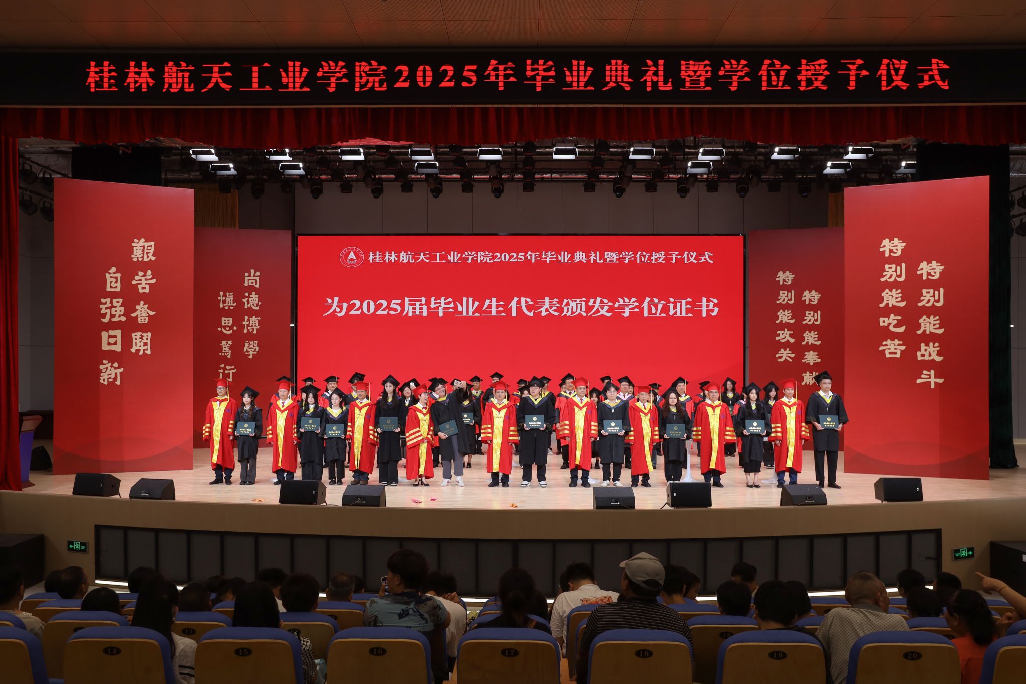 典礼上,精彩的情景剧《在盛夏告别》和朗诵《航天精神·桂航星辰》,展现了桂航学子的青春风采和航天精神。在感恩环节中,毕业生代表向专任教师、辅导员、教学秘书、实验室管理员、宿舍管理员、安全保卫员等校园各岗位工作人员献花,感谢他们多年来的默默坚守与无私奉献。四位教师带来歌曲《故事的最终》,以歌声表达不舍与祝福。