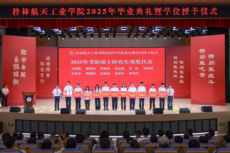 校长吴尽昭发表了题为《格物致知,思辨启新》的讲话。他深情回顾了同学们在桂航的青春足迹,肯定了大家的成长与成绩,并以“格物致知,思辨启新”八个字为主题,与毕业生分享了四点建议:一是要格物求知,坚持终身学习的态度,保持求知的欲望,持续更新知识结构;二是要思辨前行,始终保持独立思考的能力,不随波逐流,不盲从权威;三是要勇于创新,以“自强日新”的精神面对科技革命与产业变革的历史机遇;四是要笃行担当,将理想付诸行动,将使命熔铸于家国情怀。他希望全体毕业生带着母校的荣光,铭记“鲜衣怒马少年时,不负韶华行且知”的诗意嘱托,在人生新征程上绽放属于自己的精彩华章。