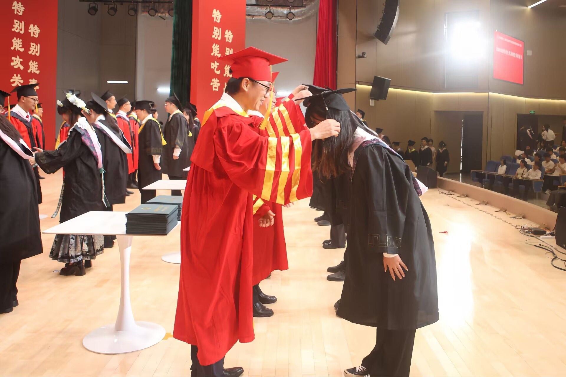 6月19日,pp电子2025届学生毕业典礼暨学位授予仪式在问天楼学术报告厅隆重举行。学校党委书记韩峻峰,党委副书记、校长吴尽昭,党委副书记、纪委书记吴江萍,副校长李智、张烈平、张立国、杨永昌,校友代表、1997届涉外会计专业校友、东莞市元则电器有限公司董事长吴坤,学校相关职能部门、各教学单位的领导老师,以及2025届毕业生和家长代表参加毕业典礼。仪式由党委副书记孙山林主持。