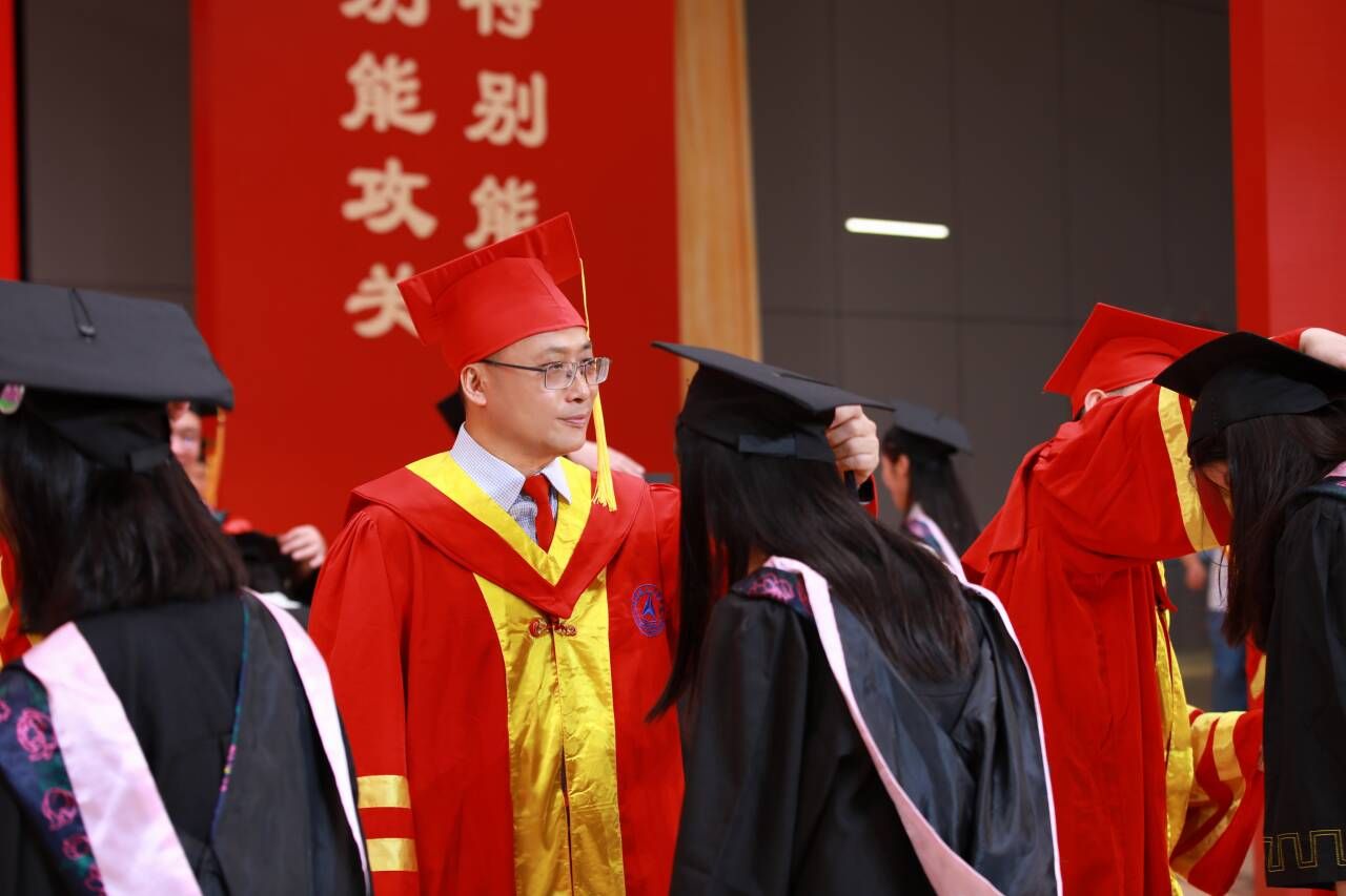 随后,李智宣读学士学位授予仪式文件,学校导师团为2025届获得学士学位的毕业生代表颁发学位证书、正冠拨穗。