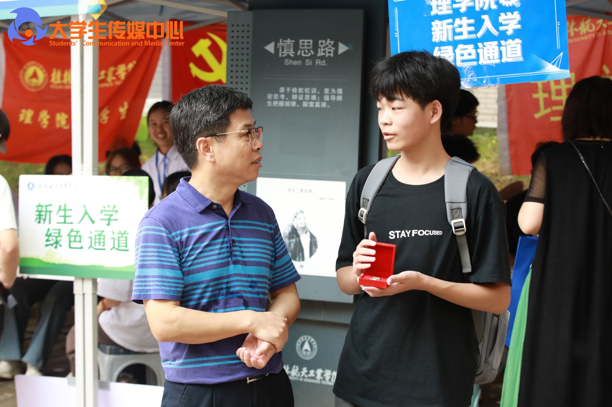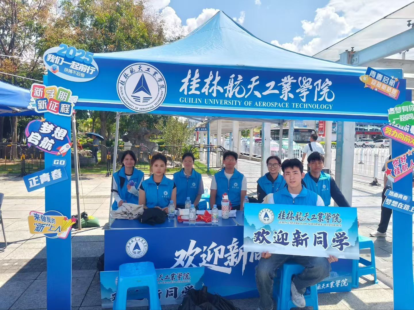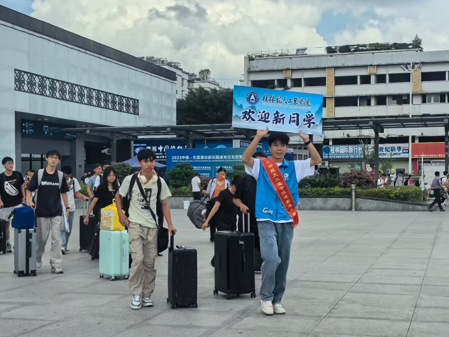 在火车迎新各站点,校领导对坚守岗位的志愿者表示感谢,对迎新志愿者能够尽心尽力做好迎新服务、展示出桂航学子良好的精神面貌表示了肯定,并叮嘱他们在工作中要注意天气炎热,注意防暑。
