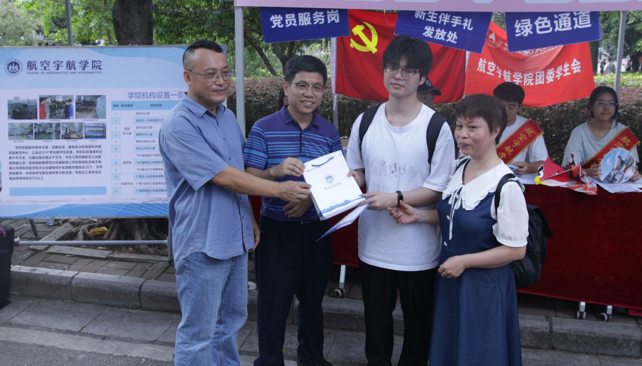 在一站式学生社区迎新服务点,校领导详细了解了“绿色通道”等资助政策的落实情况,体验了航天特色文创产品制作,还与新生一起参与了校园形象宣传。校领导鼓励志愿者积极做好服务,以学长学姐的身份,做好新同学校园生活的同行人。