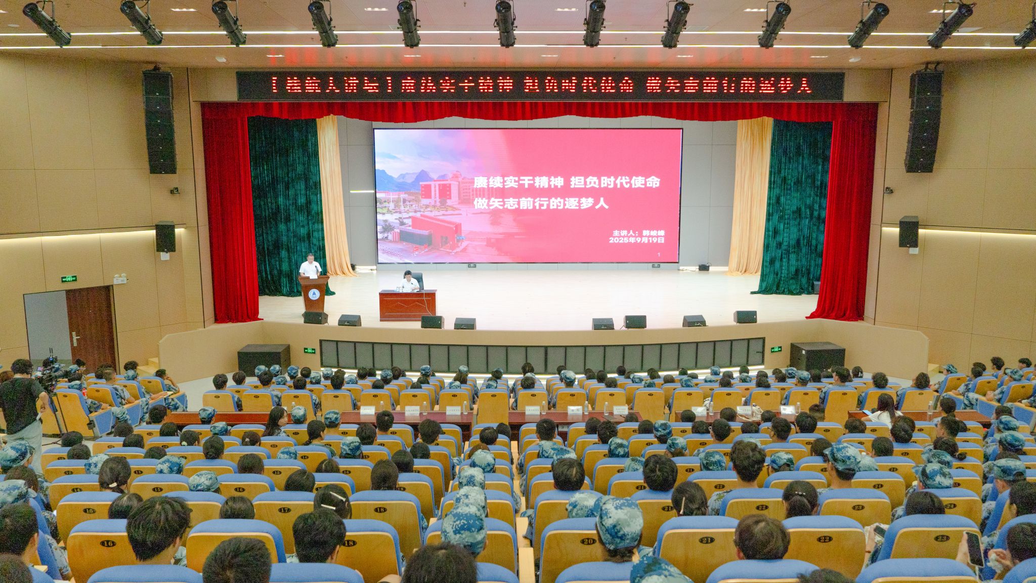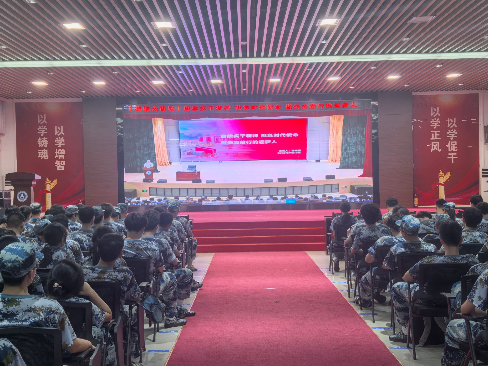9月19日下午,校党委书记韩峻峰以“赓续实干精神 担负时代使命 做矢志前行的逐梦人”为题,为全体2025级新生讲授“开学第一课”。主会场设在图书馆学术报告厅,众多师生代表现场聆听报告。小报告厅、北校致远楼108、招聘大厅及各学院同步设立分会场,4864名新生通过现场参与或集中观看的方式聆听讲座,学校Bilibili官方账号同步开设网络直播。