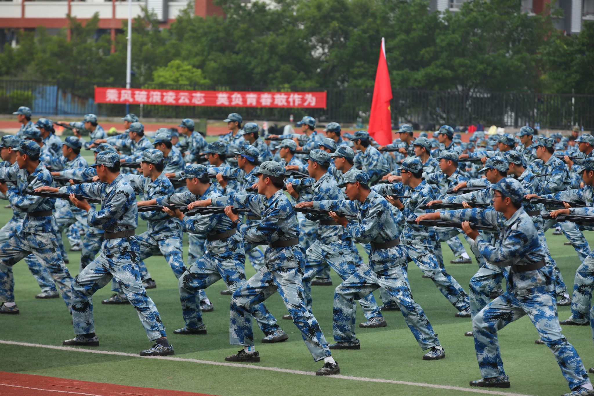 分列式后,依次进行了军体拳、刺杀操、擒敌拳、匕首操、战术展示等五个科目展示,同学们动作整齐刚劲,眼神坚定果敢,战术配合紧密,顿时成为全场焦点,也赢得了现场师生们热烈的掌声。
