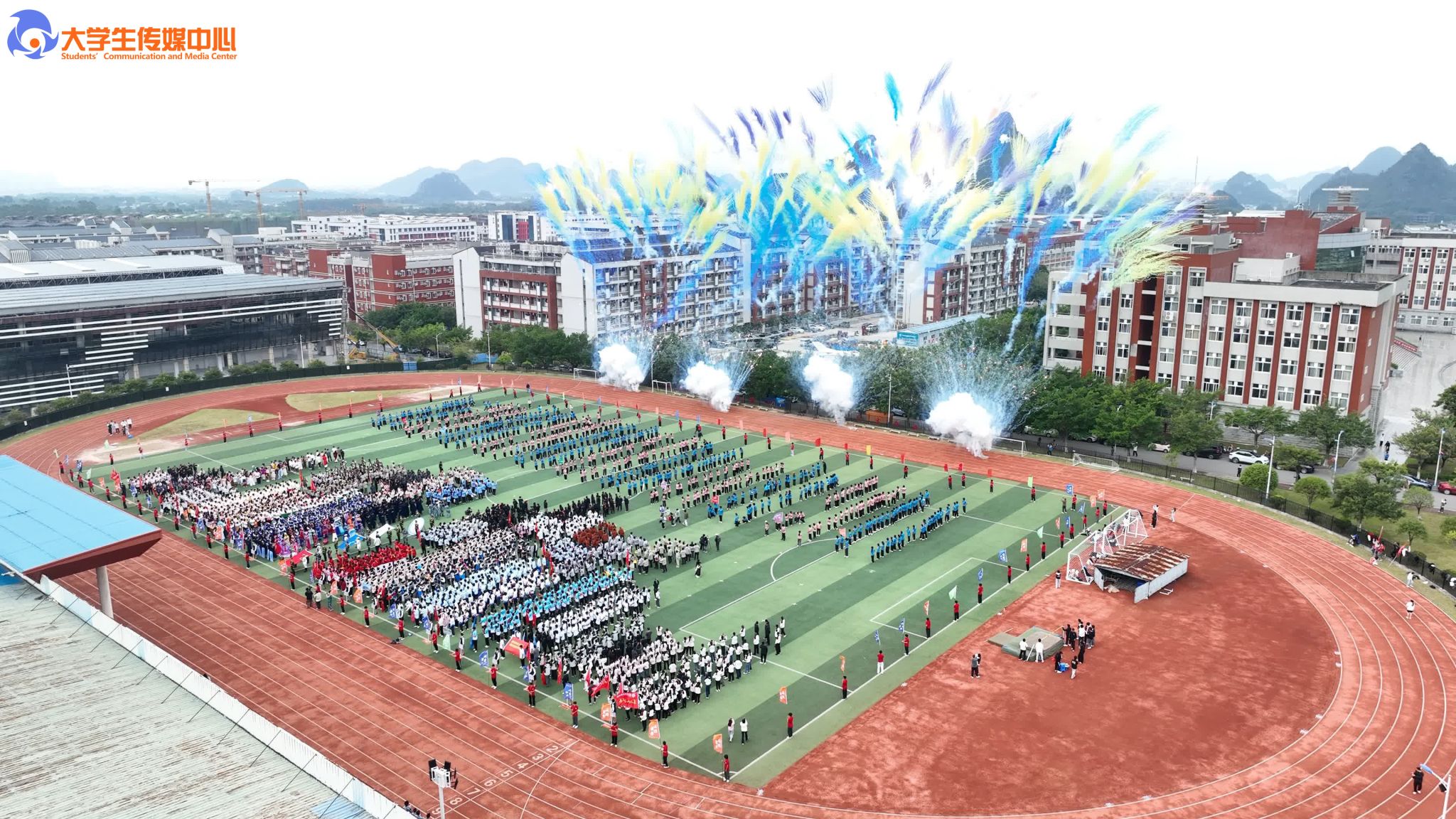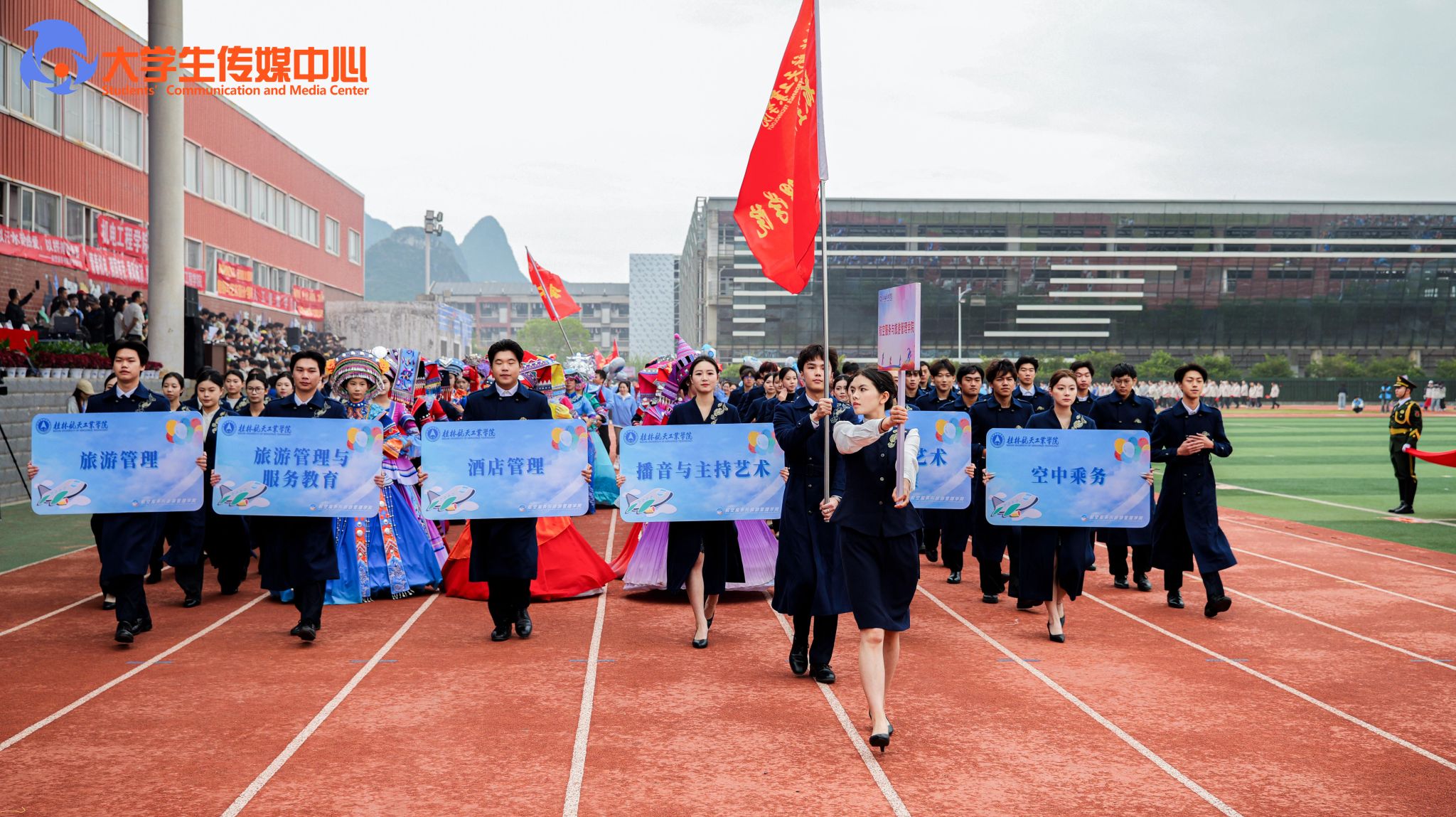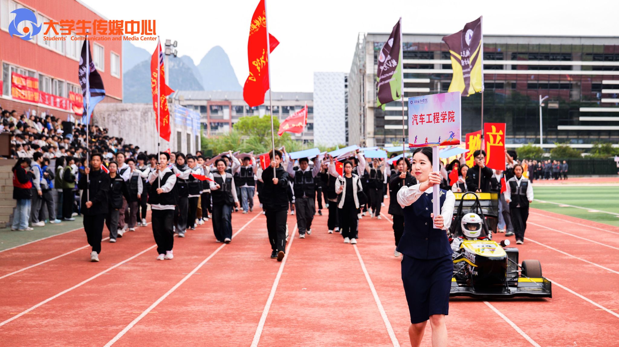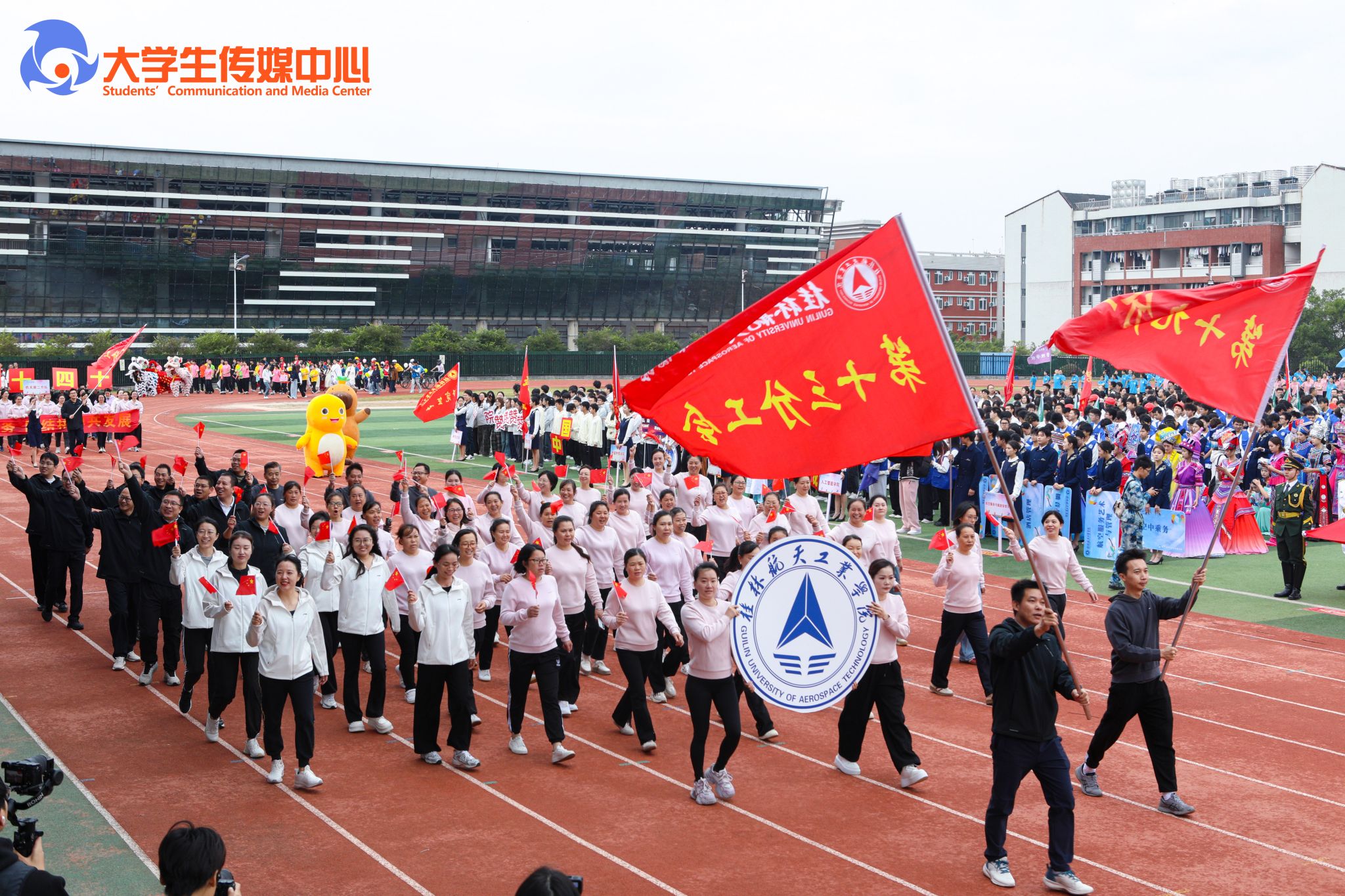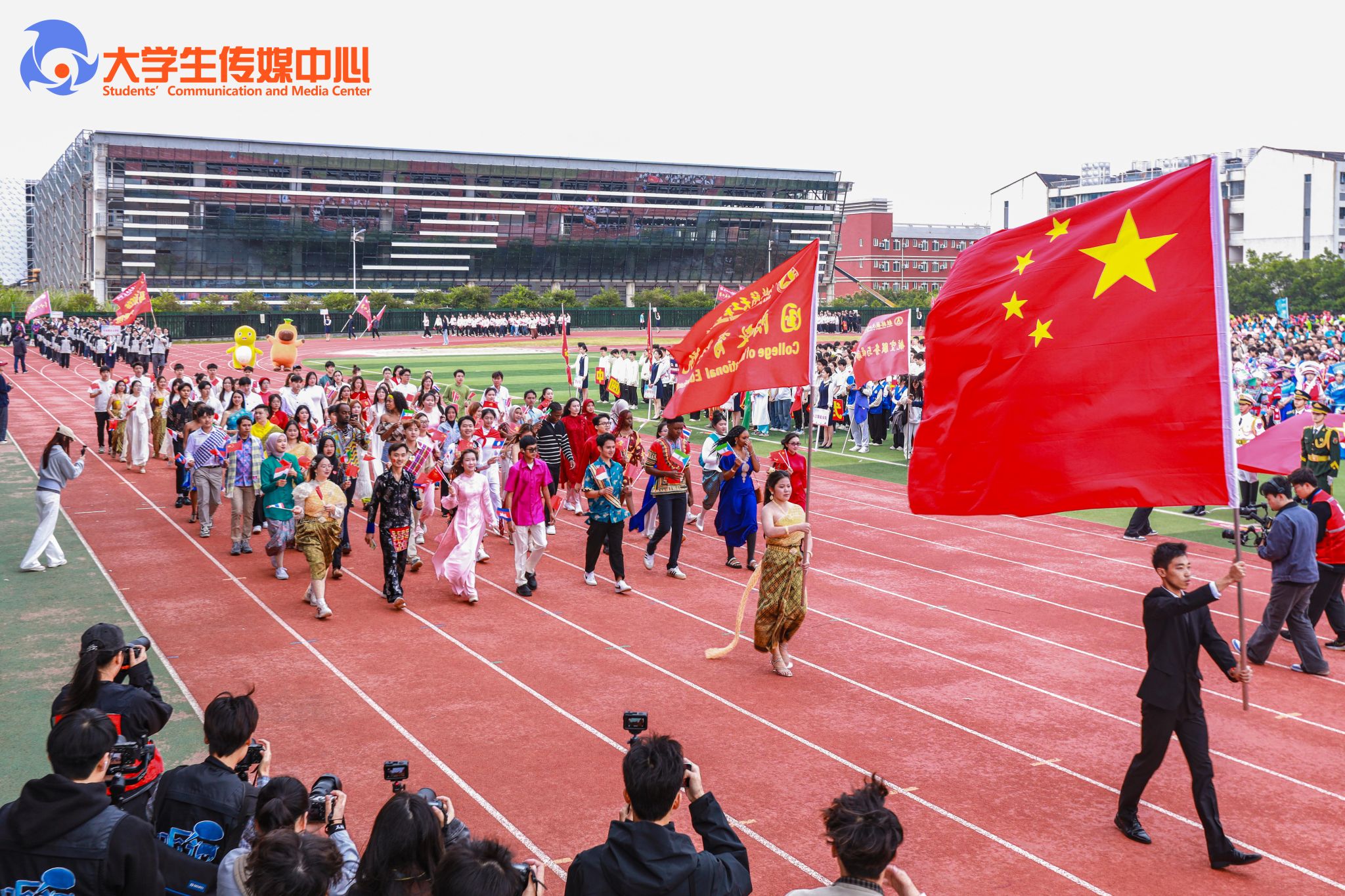 广播体操展示《律动青春》拉开了本次开幕式的序幕。国旗班方队步伐铿锵、身姿挺拔,庄严护卫五星红旗、校旗、会旗和会徽率先入场。计算机科学与工程学院与外语外贸学院组成的彩旗队,承载着科创锐气与国际视野阔步走来。随后各教学单位、机关方阵依次入场,口号嘹亮,创意纷呈、各具特色,充分展现了全校师生团结进取、奋发向上的活力与激情。