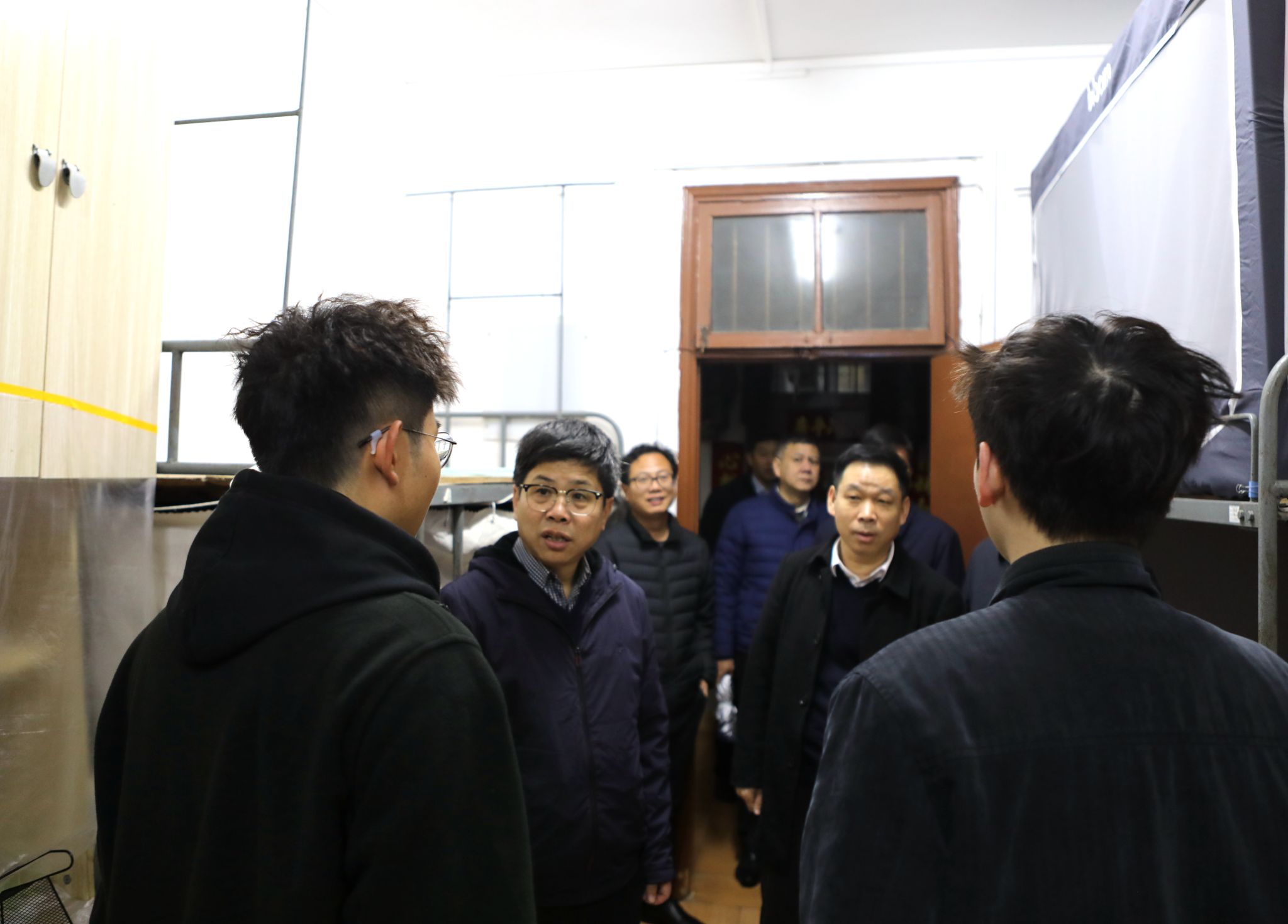 在北校区学生宿舍,检查组深入宿舍内部,与返校学生亲切交流,检查宿舍卫生、用电安全、消防通道畅通情况,仔细排查违规用电、杂物堆放等安全隐患,叮嘱学工处和宿管人员加强日常管理,强化学生安全意识教育,切实筑牢学生住宿安全防线。