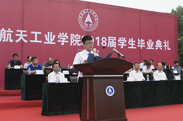 罗维民在发言中感谢母校的培养,祝福母校蒸蒸日上。他以一个年长校友的身份,从自己三十七年投身中国航天事业一线的经历,表达了桂航人的梦想、责任与担当。他希望毕业生们有理想、有目标,更要立足现实;遇困难、遇挫折,定要学会坚持;增能力、提水平,终身不断学习。“我期待着你们成为各行各业的优秀人才和领军人物,期待着若干年后分享你们健康快乐、积极上进、不惧挫折在不同工作岗位上为祖国做出贡献的心路历程,我为你们加油,我以你们为荣!”罗维民意味深长的砥砺,赢得了现场师生热烈的掌声。