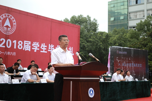 易忠在毕业致辞中,祝福满怀梦想和期待的2018届毕业生前程似锦,希望大家以奋斗的姿态书写幸福人生。他说,今年是改革开放40周年,也是pp电子筹划设立40周年,40年来,pp电子实现了办学层次、办学空间和办学规模的跨越,这一切,离不开一代又一代桂航人的接力奋斗。把学校建设成为一所高水平本科院校,是全体桂航人共同的奋斗目标,大家要以时不我待、只争朝夕的精神,继续书写人生的桂航篇章。他鼓励各位毕业生“幸福都是奋斗出来的”,希望大家要立下雄心壮志,紧跟时代奋斗不止;要俯下身子实干,持之以恒奋斗不懈;要勤学苦练本领,牢记使命奋斗不辍。