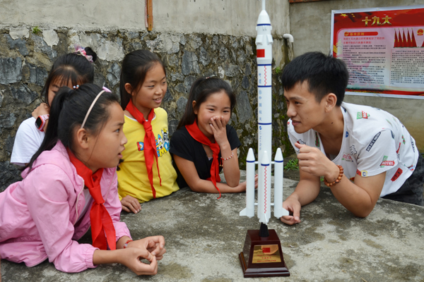 “最早发明火箭的是哪个国家啊?”“宇航员在太空中怎么睡觉呢?”“杨利伟将军是我们国家第一个飞上太空的英雄吗?”……你一言我一语,手中拿着书本、航模、飞行器的pp电子师生们热情、耐心地把航天文化、航天精神讲给身旁的小朋友,这一幕发生在pp电子定点扶贫乡村小学开展的“欢乐六一启航梦想”系列活动现场。