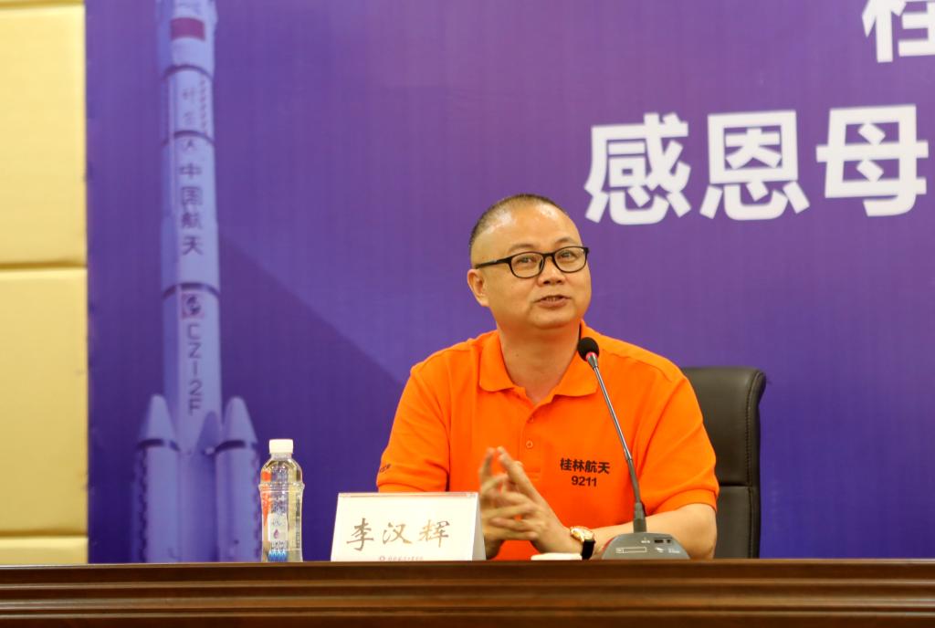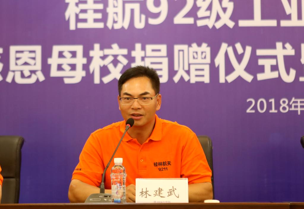 校友代表林建武表达了对母校的感恩之情,深情道出“回校能感觉到家一样的温馨”,并语重心长地勉励学弟学妹,要珍惜当下时光,积极传承航天精神,努力践行青春诺言。