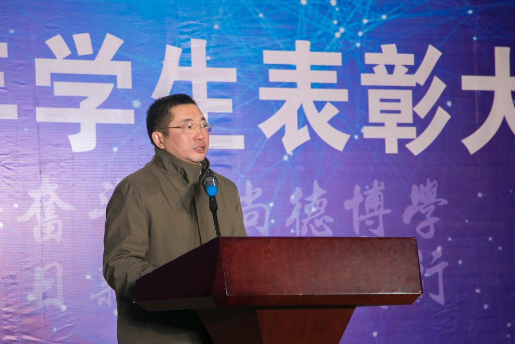 学生工作处处长梁国富代表学校宣读表彰文件。与会领导依次为校级、区级、校长奖学金及国家级奖项代表颁奖励。汽车与交通工程学院李盛及机械工程学院邵金玉同学代表获奖学生作了主题发言。