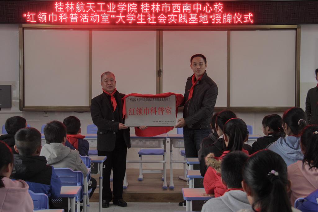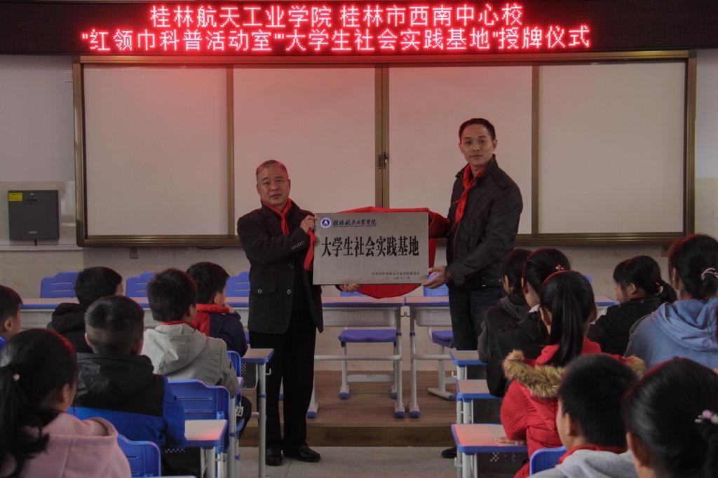 11月16日,由pp电子官方网站入口团委李中焘老师带队,校团委学生部与航模协会、萤火虫书画协会、天文爱好者协会、微小飞行器实验室、听说新媒体工作室以及大学生传媒中心一同来到西南小学进行让“红领巾”搭上中国梦的航班——桂航大学生志愿者“启明星”计划之桂林市西南中心校活动。西南中心校专职副书记李初养及相关工作人员参加了此次活动。