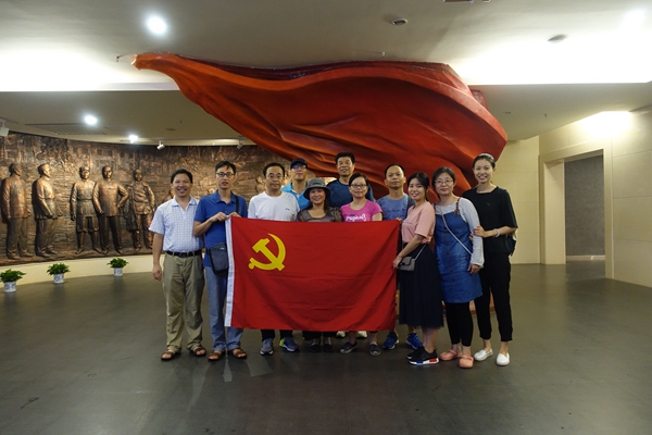 我志愿加入中国共产党……”,6月24日,理学院全体党员教师来到桂林市八路军办事处开展党员活动日主题教育活动,面对鲜红的党旗,在党支部书记李修清同志的带领下,高举右拳,重温了入党誓词。今年是中国共产党建党97周年,此次党员教育活动也是理学院直属党支部为迎接党的生日到来所专门开展的一系列的“七一”主题实践活动之一。
