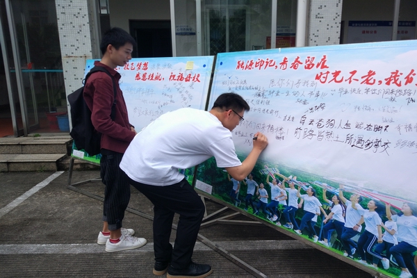 安全文明离校 留下感恩寄语。学院组织辅导员在学生返校期间多次深入宿舍与毕业生谈心谈话,关心毕业生就业和毕业设计完成情况;组织学生参加毕业典礼暨学位授予仪式;开展夜晚巡查、主题班会等活动,保证毕业生安全文明离校。学院在宿舍园区、食堂前、办公楼前设置“毕业寄语”留言板,毕业生们积极留言,寄语师弟师妹、寄语母校,表达自己不舍离校情、感恩母校情、同学友谊情;学院教师、在校学生们也纷纷留言,祝福毕业生前程似锦。