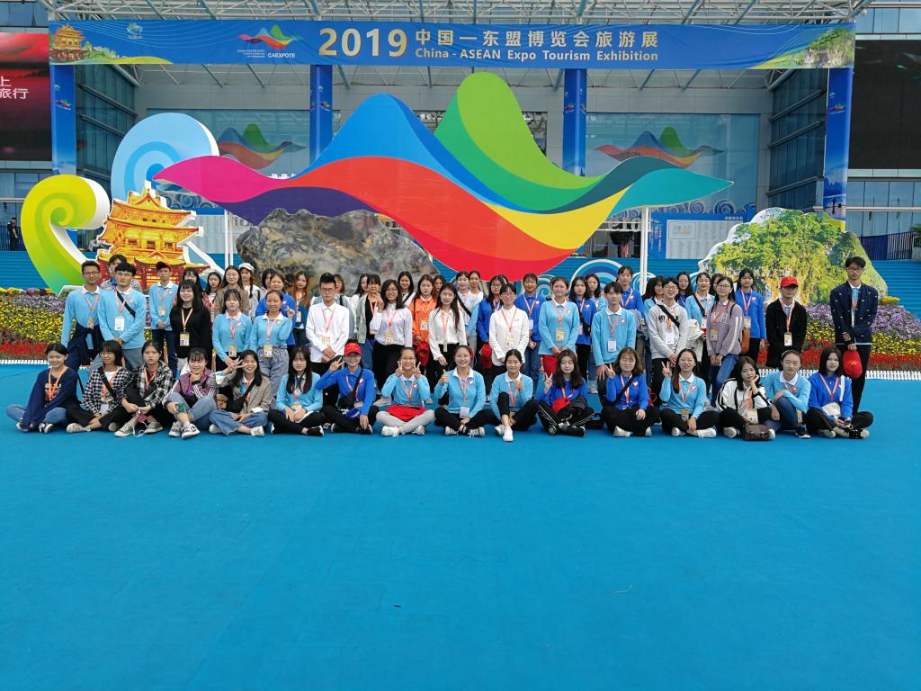 为提升学生社会实践能力和综合素质,10月18-20日外语外贸学院2018级商务英语专业89名同学参加2019年中国-东盟博览会旅游展志愿者服务活动。商务英语教研室教师全程参与指导旅游展志愿者服务活动。