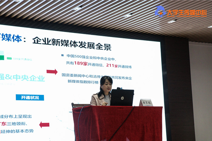 讲座中,黄昱梅以全媒体时代如何促进传统媒体与新媒体融合发展为主线,向同学们介绍了人民网“中央厨房”项目的启动背景、总体设计、运营模式以及工作方式。她指出,全媒体时代传统媒体只有不断的自我革新,拓展平台和业务空间,才能实现与新媒体发展互惠互利。讲座中,黄昱梅老师结合自身采编工作经历,与同学们分享了人民网广西频道策划的《精准扶贫专题报道》《贵港党建媒体融合宣传》《鹿心社书记贺新春》三个成功的新媒体实践案例,对新媒体新闻专题的策划、报道、宣传进行了详细的讲解。黄昱梅还介绍了人民网的大学生新闻实践项目“传媒实验室”,对该项目培养出了优秀大学生记者进行了介绍,鼓励在场所有热爱新媒体工作的同学们多参与新闻实践,当好校园文化的守护者,积极传递青春正能量。