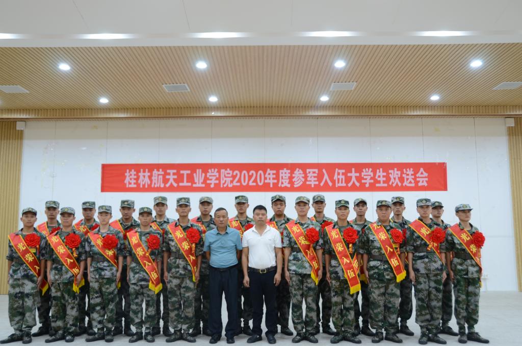 9月9日上午,pp电子2020年度参军入伍大学生欢送会在桂林市中小学生示范性综合实践教育中心召开,为即将奔赴军营的22名入伍大学生举行入伍欢送会。