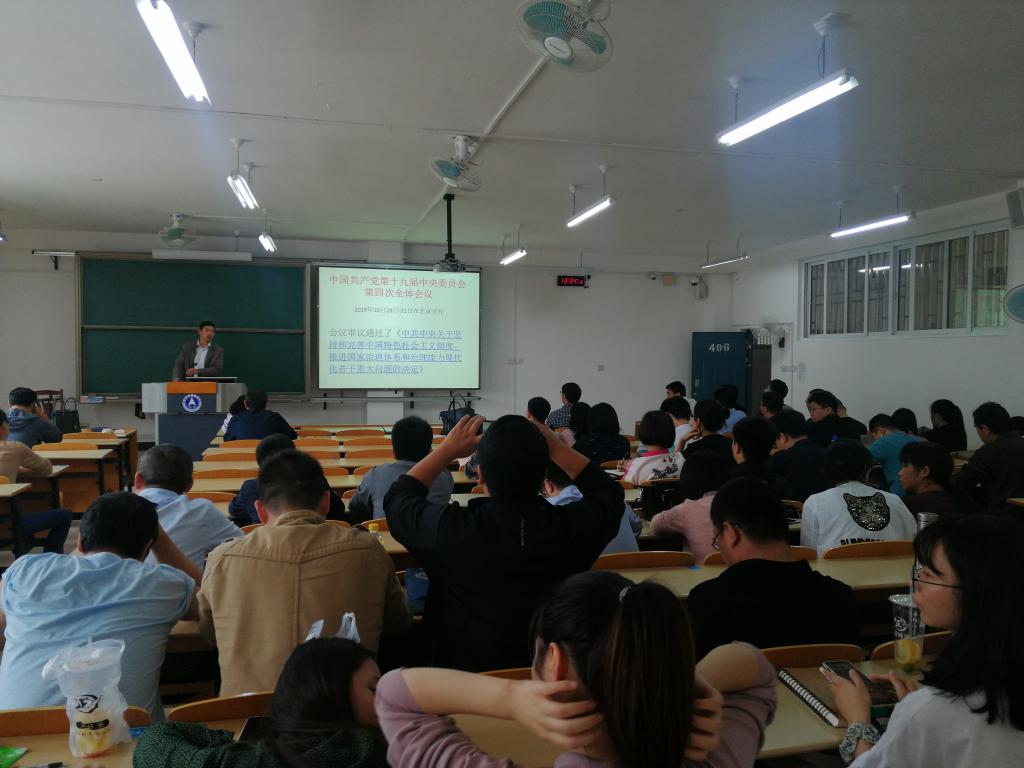 9月29日中午,按照学校党委学习部署,电子信息与自动化学院党总支在飞天楼406教室组织开展了党的十九届四中全会精神专题集体学习活动,学院全体教职工党员参加了学习活动。