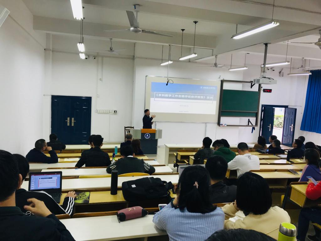 学院负责人指出,自评报告是对学校本科办学工作的全面总结,也是合格评估的核心文件和工作开展的纲领从本科教学合格评估指标体系、自评报告解读和合格评估需要关注的重点问题等三个方面展开阐述,针对评估指标体系内涵和基本要求,详细解读了学校办学思路与规划、领导作用、教师队伍、教学条件与利用、专业与课程建设、质量管理、学风建设与学生指导、教学质量等方面内容,以问答形式解读了在合格评估中应当关注的重点问题。