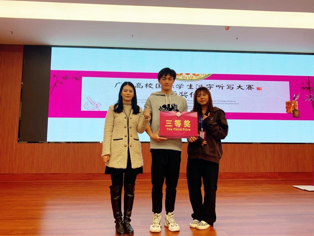 11月12至14日,由广西高等教育学会外国留学生教育管理专业委员会主办,广西师范大学国际合作与交流处/国际文化教育学院承办的汉字听写大赛暨中国文化体验活动在广西师范大学隆重举行,pp电子国际教育学院老师带领两名留学生参加了此次大赛。