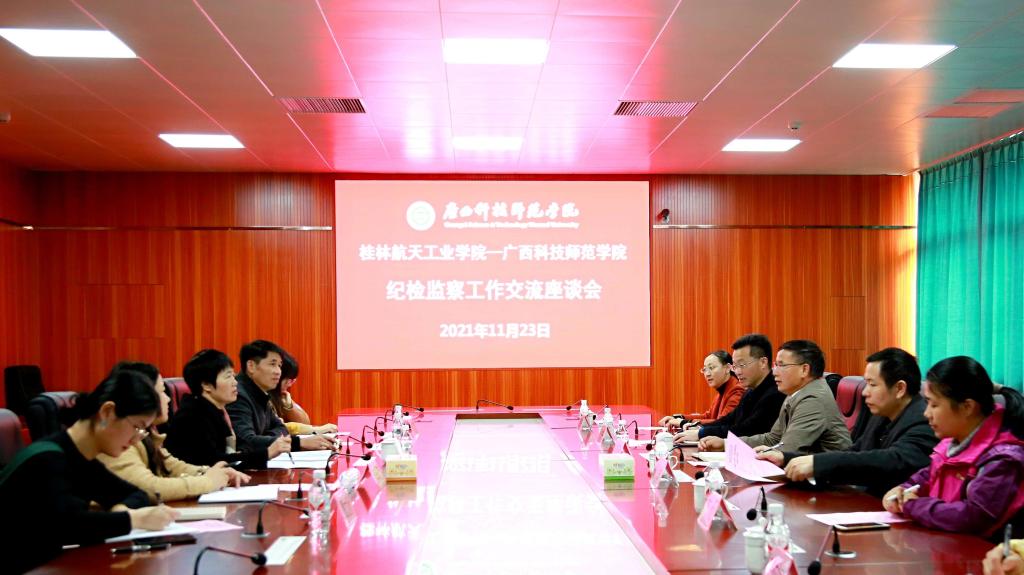 为进一步提高pp电子纪检监察干部的履职能力,推动pp电子纪检监察工作高质量发展。11月23日,pp电子党委常委、纪委书记韦冠武带领纪委办公室、监察处干部一行6人到广西科技师范学院开展纪检监察工作调研交流,受到该校党委副书记、校长杨杰和党委副书记、纪委书记吴江萍的热情接待。