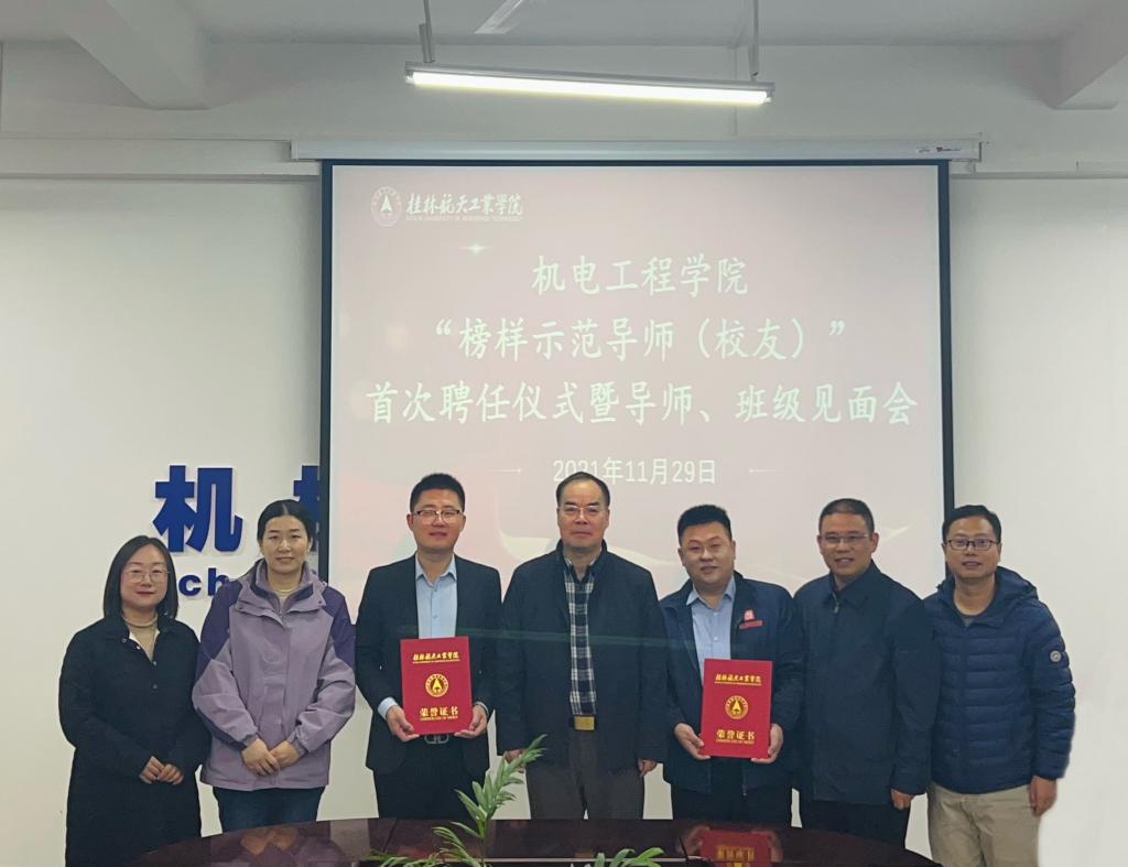 会上,刘迎春代表学校对校友反哺母校教育之举表示感谢,并为两位校友颁发聘书。刘迎春对机电工程学院实施“654321党建工程”、推行“五导引培”立德树人新模式的创新之举给予了充分肯定。他回顾学校发展历程,感怀发展速度;阐述学校当前布局,提示师生要珍惜资源艰苦奋斗;展望学校未来规划,倡导师生抢抓机遇争创标杆为校创牌他强调,新时代的桂航学子,要以校友导师为榜样,珍惜运用好机会资源,做到脚踏实地、立志高远,树立学无止境、终身学习意识,要主动参与校风学风建设,做到立志考研、全面融入“中国梦”。