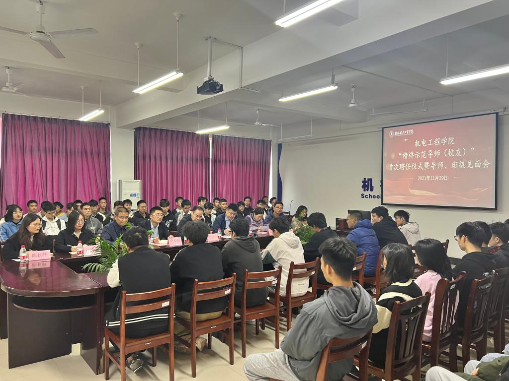 11月29日上午,机电工程学院班级“榜样示范导师”首次聘任仪式暨导师班级见面会在巡天楼205会议室举行。学校党委副书记刘迎春山东恒远智能科技有限公司创始人兼董事长2003级机械制造工艺与设备专业张永文校友山东燕园教育集团创始人兼董事长2007级物流管理专业李福振校友出席会议