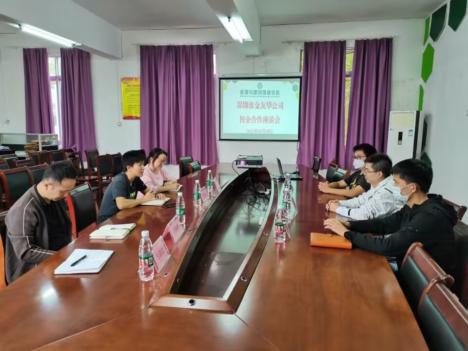 10月28日下午,学院邀请校友企业深圳市金友华净化科技有限公司总经理及相关部分负责人来pp电子召开校企合作座谈会并召开校园招聘会,双方经深入沟通和交流达成初步意见,计划下一步再深入合作。