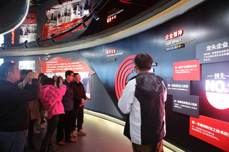 追随习近平总书记2021年4月26日视察柳州时重点考察产业的足迹,党务干部们先后参观了广西螺霸王食品有限公司、柳州工业博物馆和广西柳州钢铁集团有限公司。在广西螺霸王食品有限公司文化展览馆及其产品生产线,大家全程观摩了“一碗粉和九种配料”的高水准工业化制作过程,现场体会到“小米粉”做成“大产业”、从传统特色产品“蝶变”为“网红食品”的市场传奇。随后,大家兴致勃勃地来到柳州工业博物馆,从各式机床到“五菱”品牌,了解柳州工业从无到有、从小到大、从弱到强的百年发展历程,感叹科技带来的巨大变化,人民生活品质得以不断提升。最后,在柳钢集团展览馆,走过贯穿钢铁元素的九大篇章,了解65年来柳钢集团企业与文化的发展历程,及其在产品创新应用、科技研发、绿色环保、多元发展等方面取得的成绩,学习了“铁一般信仰、铁一般信念、铁一般纪律、铁一般担当”的柳钢精神。