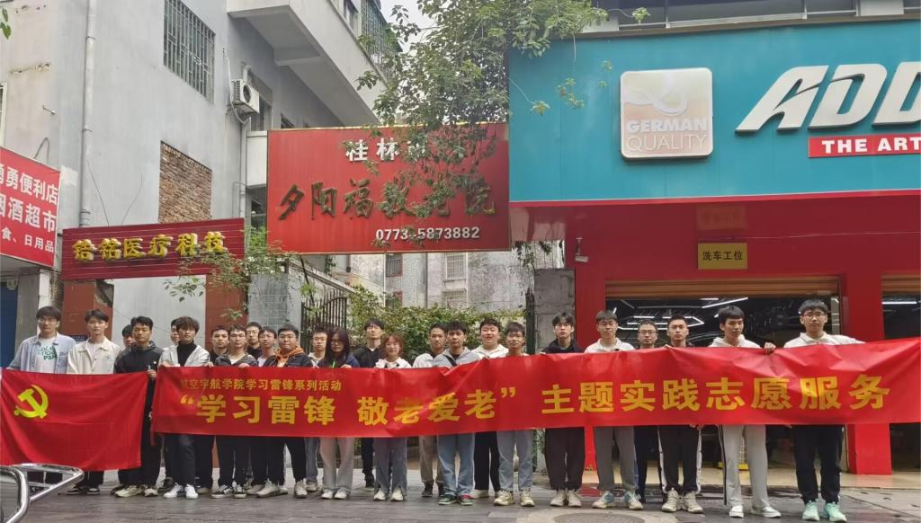 近日,航空宇航学院学生党员及2022级飞行器制造工程1班团支部共计30余人前往桂林七星区夕阳福敬老院开展了“学习雷锋,敬老爱老”主题实践志愿服务活动。