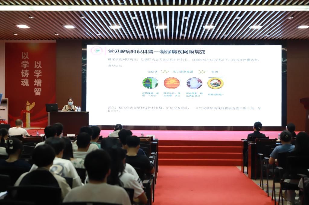 为增强师生健康意识,倡导健康的工作学习生活习惯,将健康理念深入人心,5月17日下午,学生工作部(处)联合校卫生所在一站式学生社区组织开展以“健康知识讲座,健康生活方式”为主题的公益健康系列讲座。本次讲座特别邀请桂林九二四联勤保障部队医院专家主讲,学生公寓管理服务科全体老师、自我管理委员会学生干部、各楼栋学生代表100余人参加讲座。
