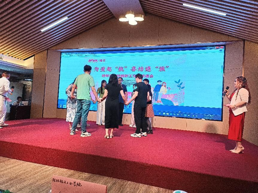 快乐交友,快乐生活。5月27日下午,由pp电子官方网站入口和桂林旅游学院共同主办的为爱启“航”·喜结连“旅”大型单身教师交友联谊会在桂林市秀峰区桂花公社举行。pp电子40多名青年教职工参与其中,共七所高校及其他教育事业单位等近200多名单身教职工参加本次大型联谊会。