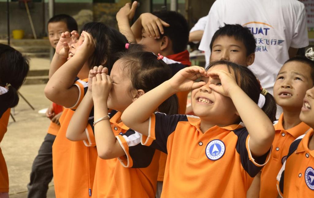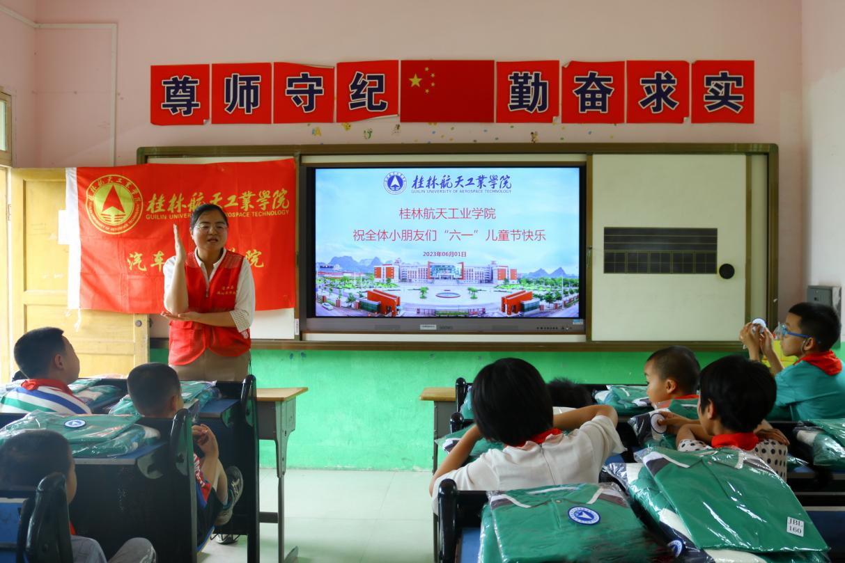 学校向村小学师生分别赠送了公文包、校服等节日礼物。校团委、航空服务与旅游管理学院、汽车工程学院、外语外贸学院、航空宇航学院等部门单位师生为小朋友们精心准备了无人机编队、航模组装、航天科普等丰富的节目,和小学生一起制作橡皮筋飞机、组装太空车,让他们在学一学、想一想、做一做中感受航天文化带来的快乐。