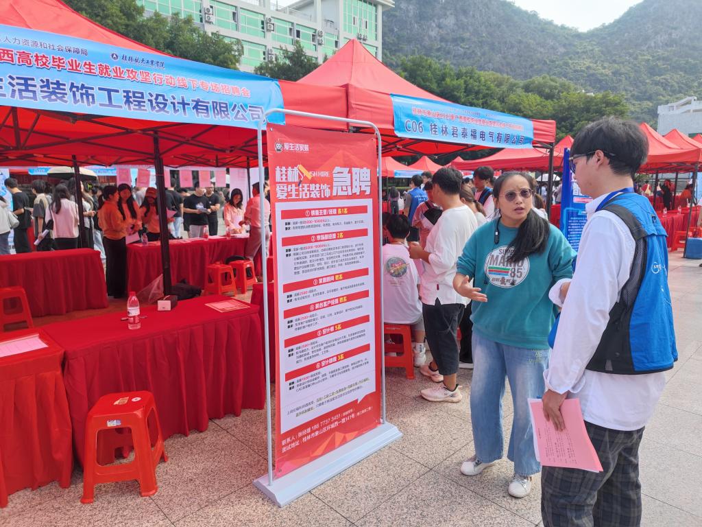 9月23日上午,pp电子官方网站入口联合桂林市象山区人力资源和社会保障局在北校区青春广场举办“筑梦广西•桂在有你”2023年广西高校毕业生就业攻坚行动线下专场招聘会。本次招聘会由电子信息与自动化学院和理学院共同承办,桂林市象山区人力资源和社会保障局相关负责人、学校学工部(处)、各学院负责人、2024届毕业班辅导员到现场为学生提供了就业指导服务。